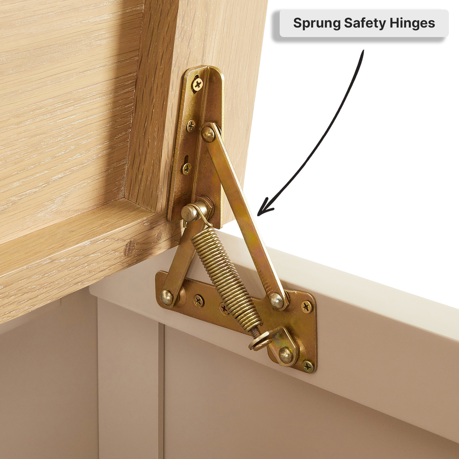 Easy Open Top - The front of the bedding box has a finger groove underneath the top front edge that allows for you to easily open and close the top. The top has sprung safety hinges that allow for the top to safely stay open when fully opened.