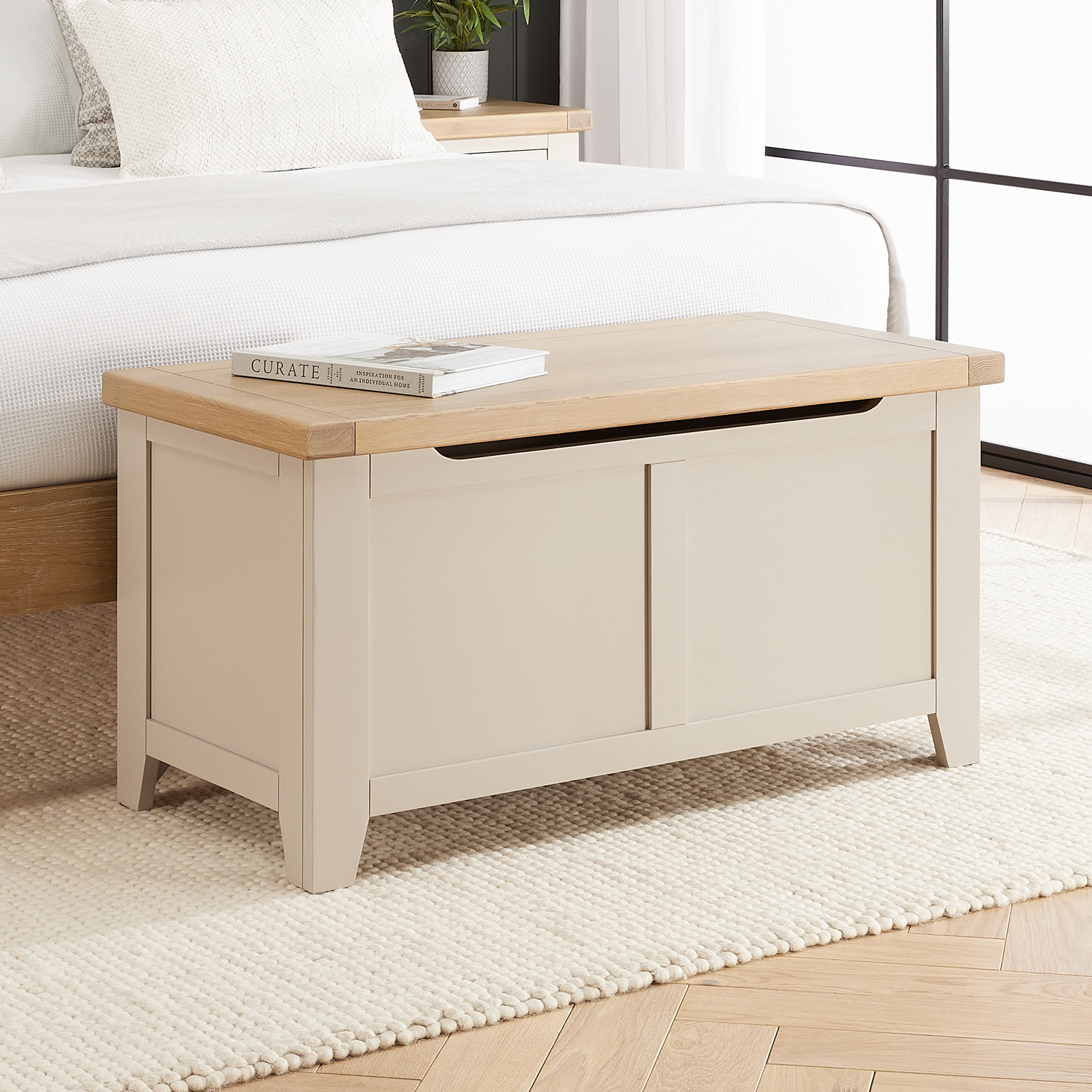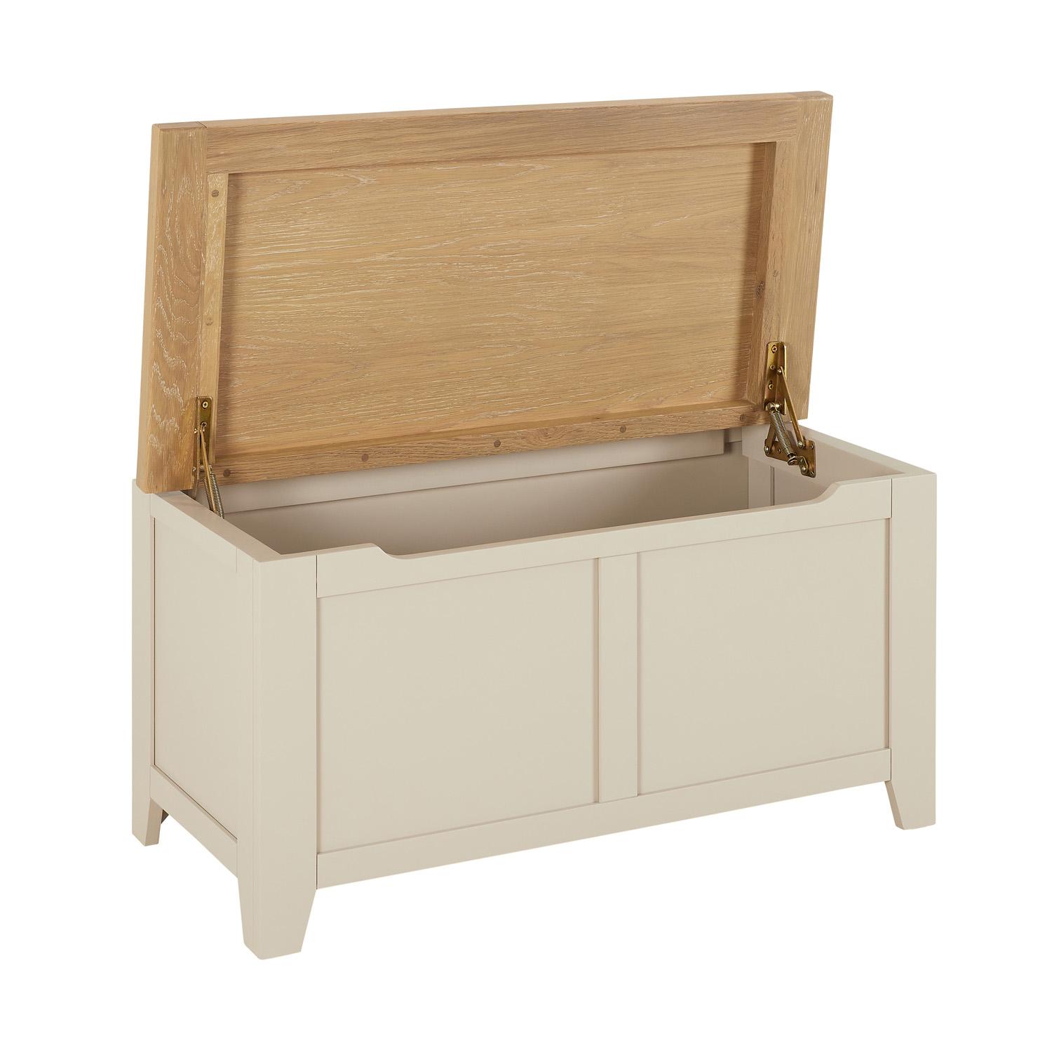 Timeless Shaker Design – This Cheshire Dove Grey blanket box showcases timeless shaker styling, with the clean lines, panelled front and sides, elegantly tapered feet, and a 40mm thick oak top. Every detail reflects exceptional craftsmanship and the meticulous attention to detail that makes the Cheshire range truly stand out.