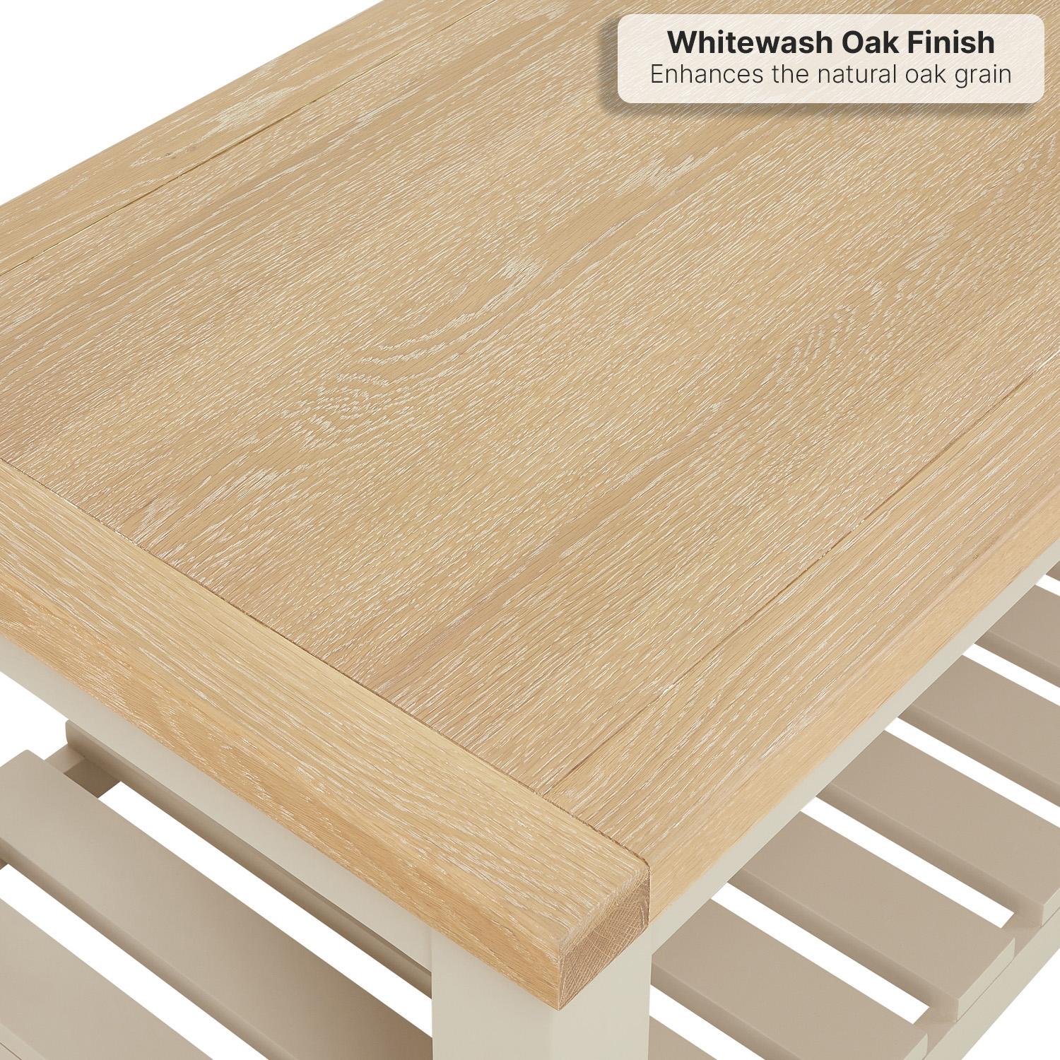 Dove Grey Painted with Whitewash Oak Top - This furniture is finished in a timeless Dove Grey paint finish, offering a subtle, muted tone that effortlessly complements both traditional and contemporary interiors. Its gentle grey hue strikes the perfect balance between warmth and coolness, making it an adaptable choice for any space. The oak tops feature a hand-applied whitewash finish, delicately softening and enhancing the natural grain to create a beautifully airy and refined aesthetic. A durable matt lacquer adds lasting protection to the tops while preserving the oak’s inherent charm, ensuring a flawless blend of durability and elegance. Designed for effortless upkeep, this furniture is maintenance-free and can be easily cleaned with a damp cloth.