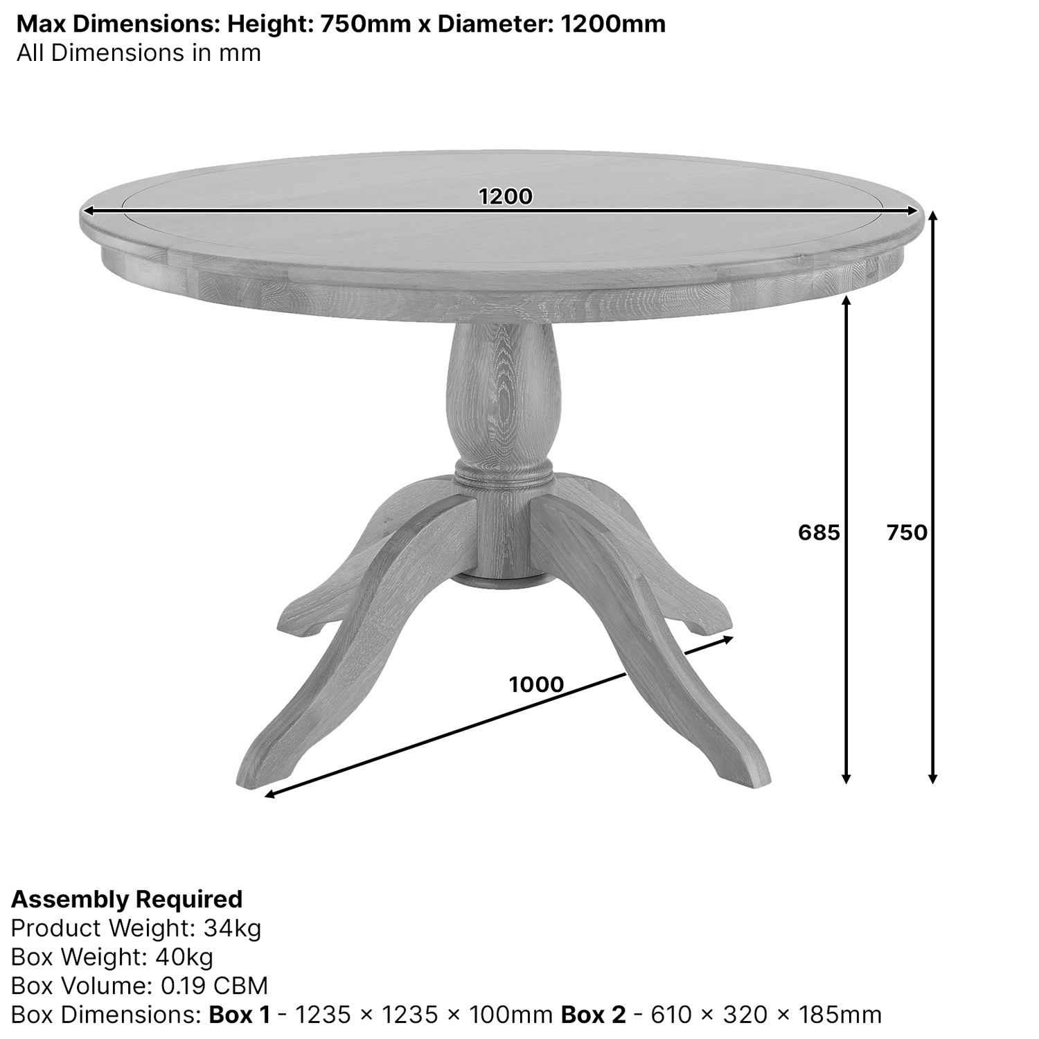 Cheshire Oak 1.2m Round Dining Table – A beautifully crafted solid oak round dining table, perfect for intimate family meals and sociable gatherings. Expertly made using traditional construction methods, its circular design encourages conversation and togetherness, ensuring everyone feels part of the occasion. The generously sized oak tabletop rests on an elegant pedestal base with four gracefully shaped legs, combining timeless craftsmanship with outstanding stability. Comfortably seating four for everyday use, this versatile oak pedestal dining table can also accommodate up to six chairs for occasional use when entertaining. Blending durability, elegance, and functionality, it makes a warm and inviting centrepiece for any dining space.