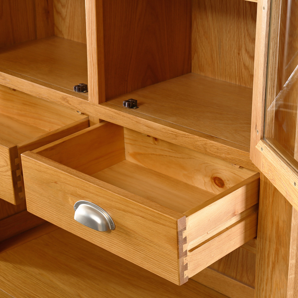 Timeless Shaker Design – This Cheshire Oak glazed dresser showcases timeless shaker styling with the clean lines, panelled sides, elegantly tapered feet, and a 40mm thick oak top. Every detail reflects exceptional craftsmanship and the meticulous attention to detail that makes the Cheshire Oak range truly stand out.