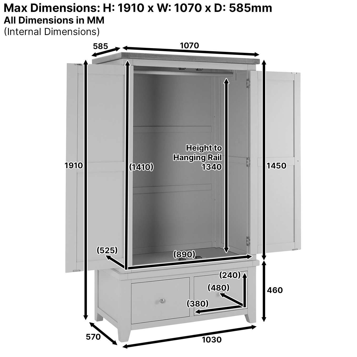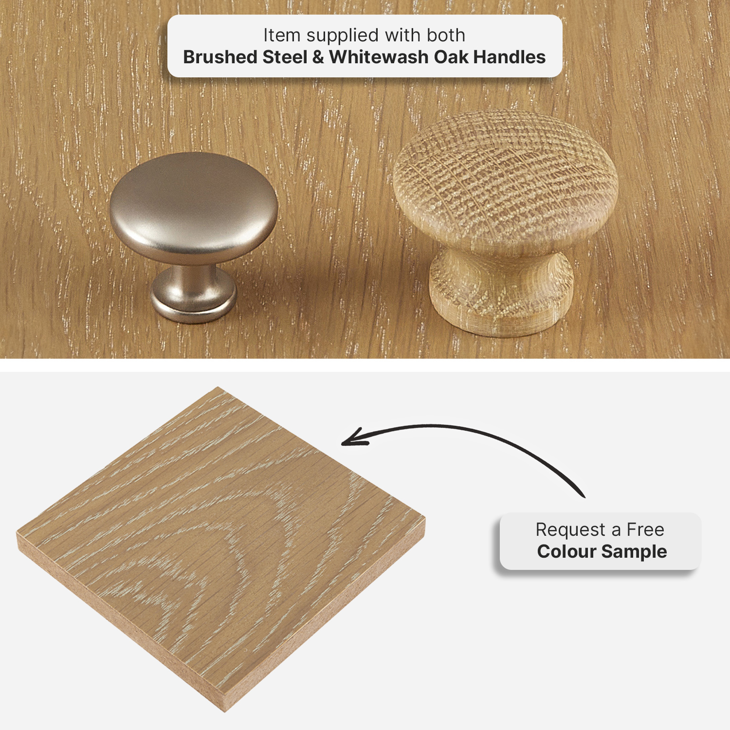 Two Handle Options Provided – This wardrobe is supplied with two types of round handle, brushed steel finish and a whitewash oak finish. The brushed steel handles offer a sleek, contemporary vibe, while the whitewash oak handles exude a more classic, traditional charm. With both options included, you have the flexibility to choose the look that perfectly suits your style.