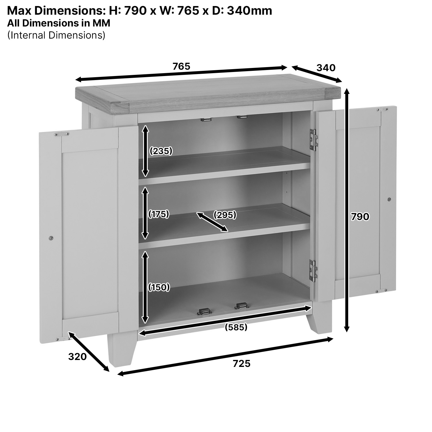 Cheshire Whitewash Oak Small 2 Door Cupboard – A compact yet highly versatile storage solution, perfect for organising your home with style and practicality. Designed to seamlessly fit into various spaces, this elegant unit serves multiple purposes, from shoe storage in a hallway to filing and paperwork organisation in a home office. Inside there are two height adjustable shelves that allow you to customise the storage space to suit your needs, ensuring maximum flexibility for organizing household essentials.