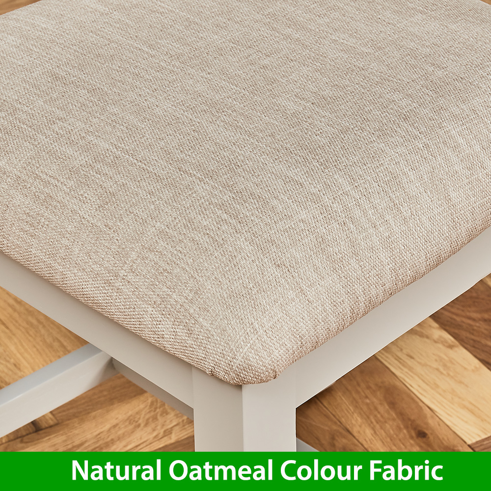 This Cotswold Grey Painted dining chair has a ladder back design and a natural oatmeal colour seat pad that is very comfortable and hard-wearing for everyday use. The chair frame is made from solid hardwood and is painted in a light Grey colour with a satin paint finish.