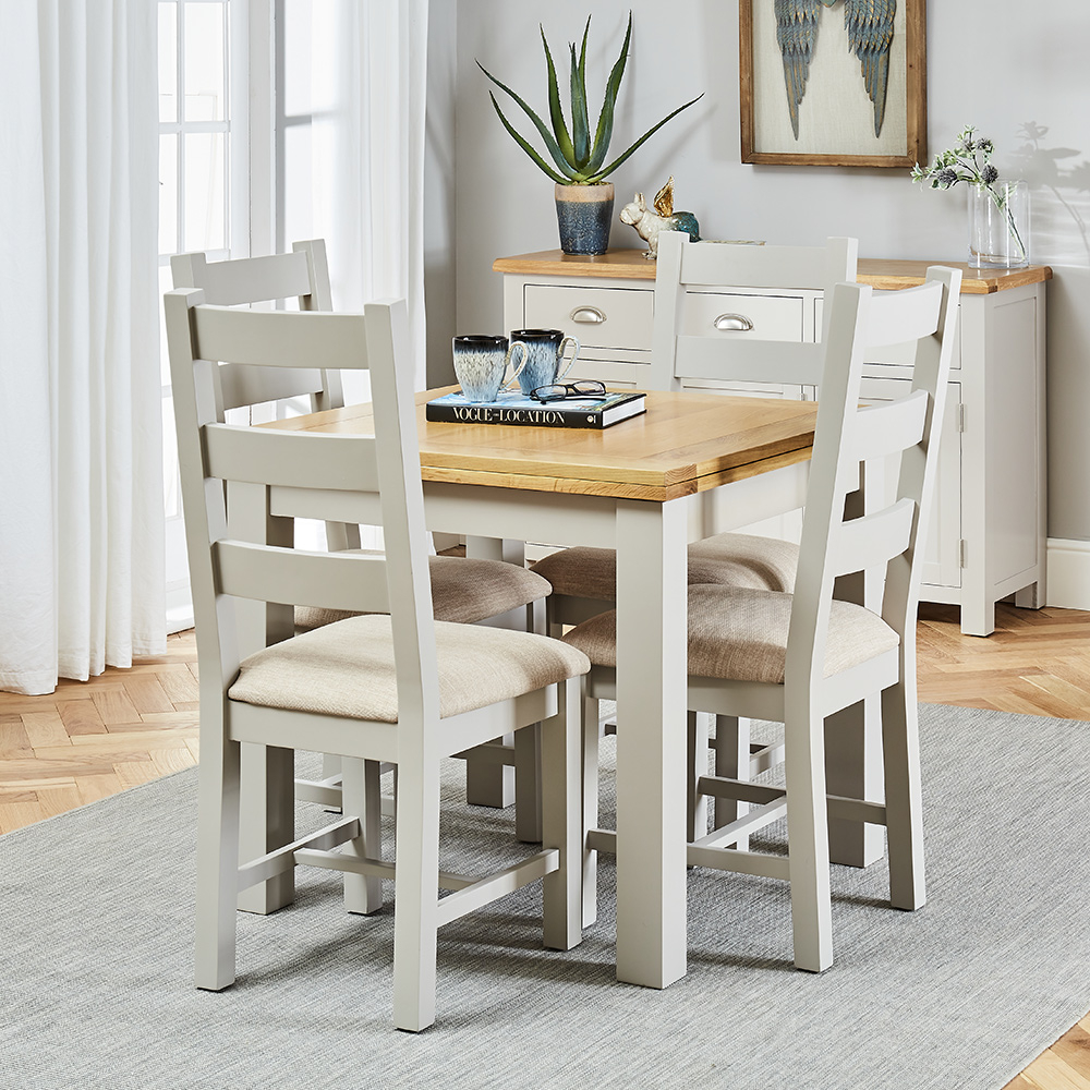 This listing is for the Flip top square dining table and Cotswold Grey dining chairs x 4 qty.