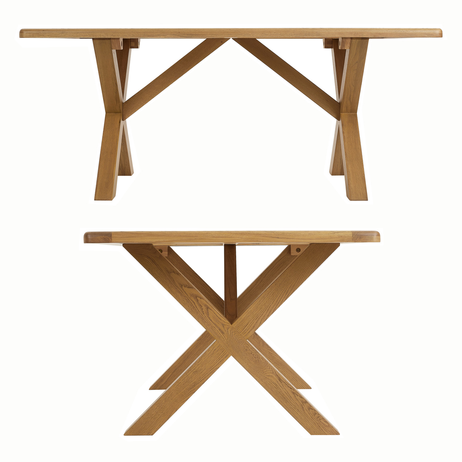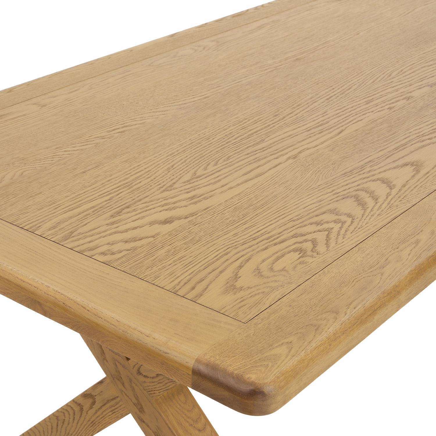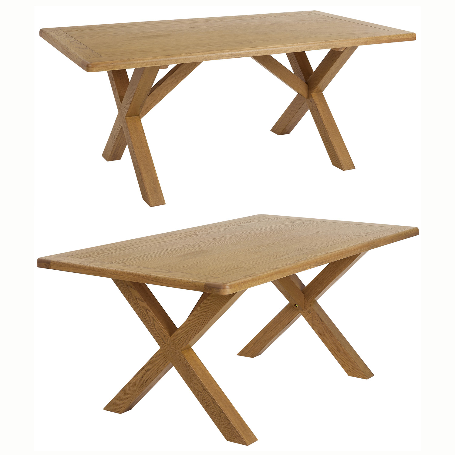 The dining table features an attractive cross shaped leg frame and the 40mm thick oak top has softly rounded corners. This is a very stylish and attractive dining table that is sure to become the focal point of any kitchen or dining room.