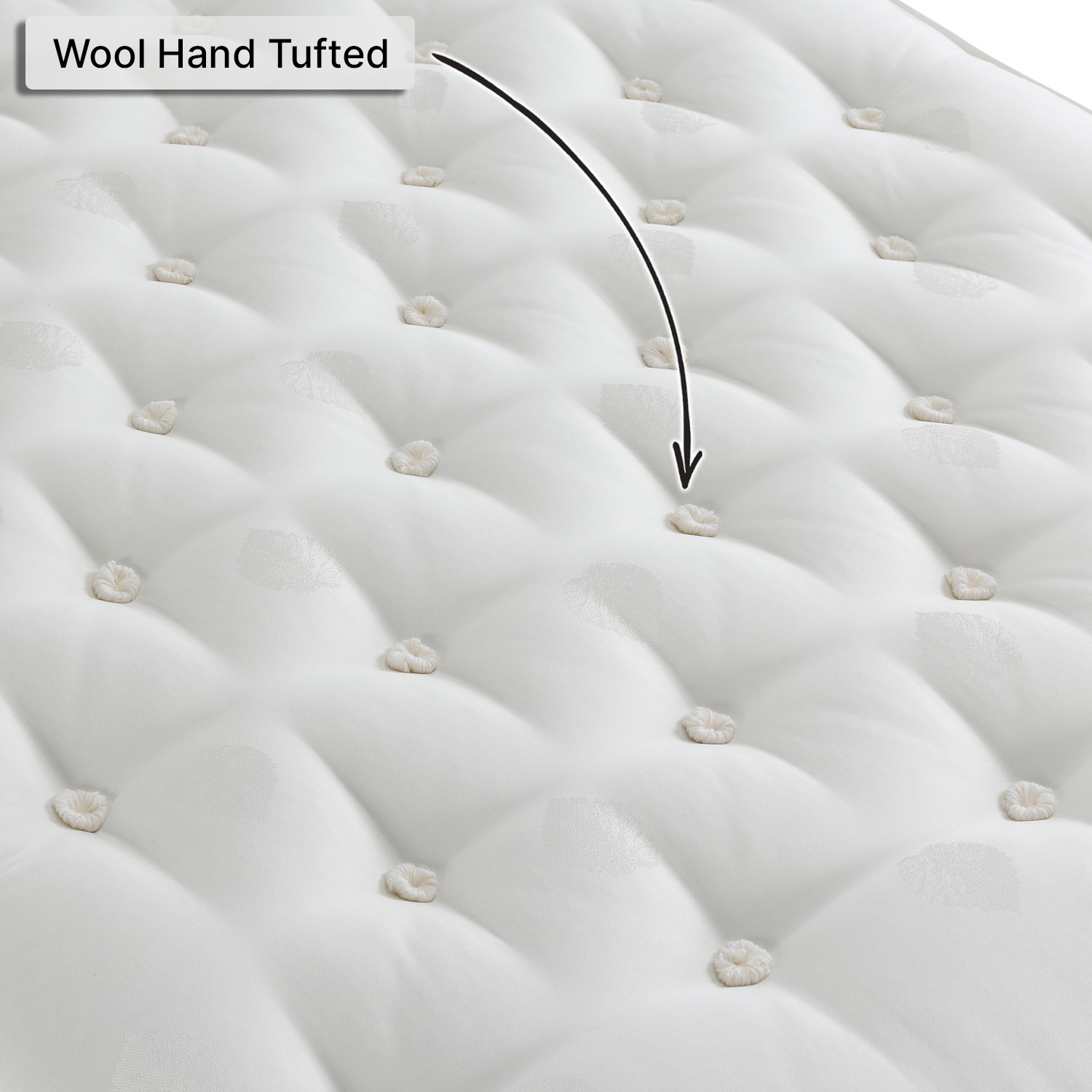 Hand-applied wool tufts keep the internal layers firmly in place, helping the mattress maintain its shape and long-lasting comfort.