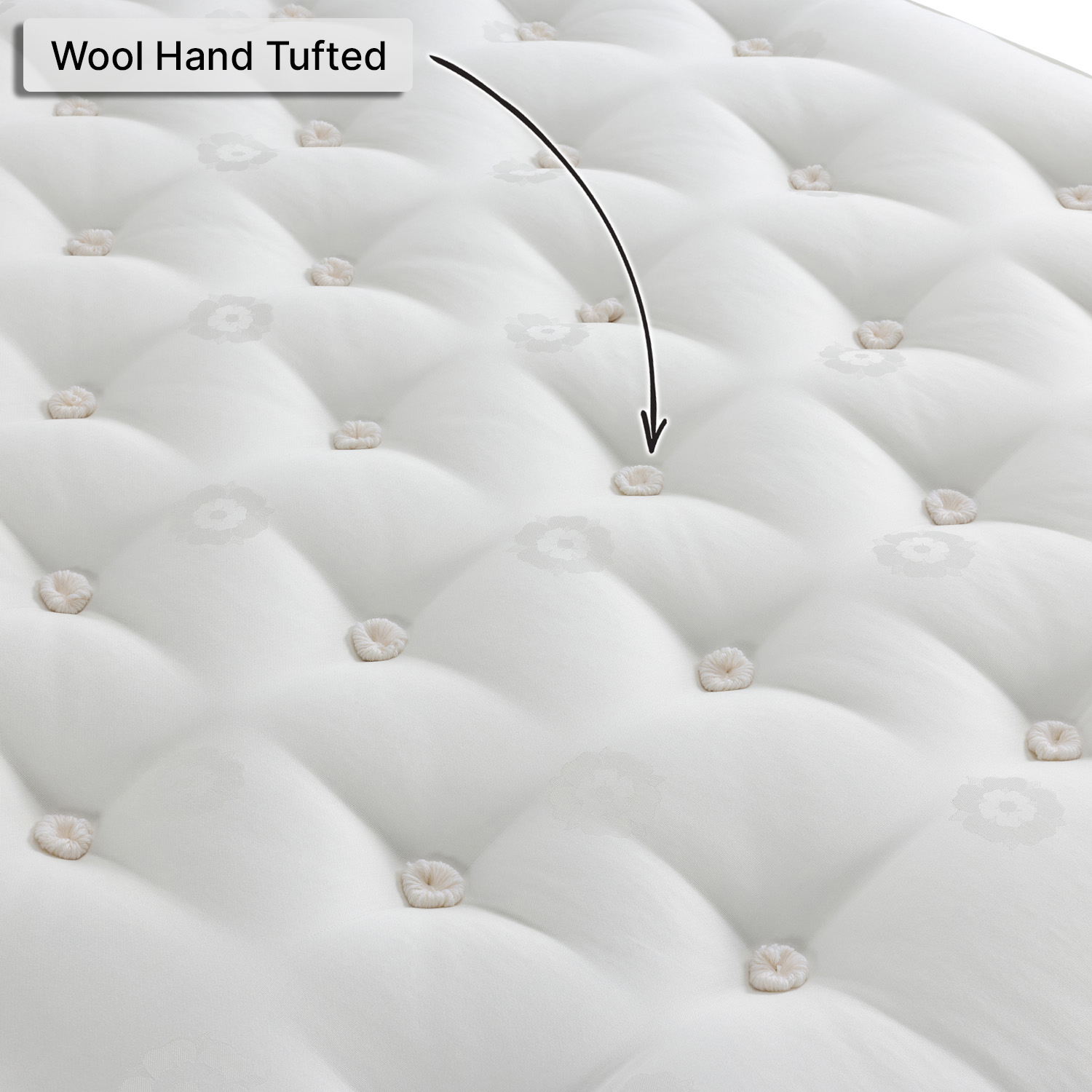 Hand-applied wool tufts keep the internal layers firmly in place, helping the mattress maintain its shape and long-lasting comfort.