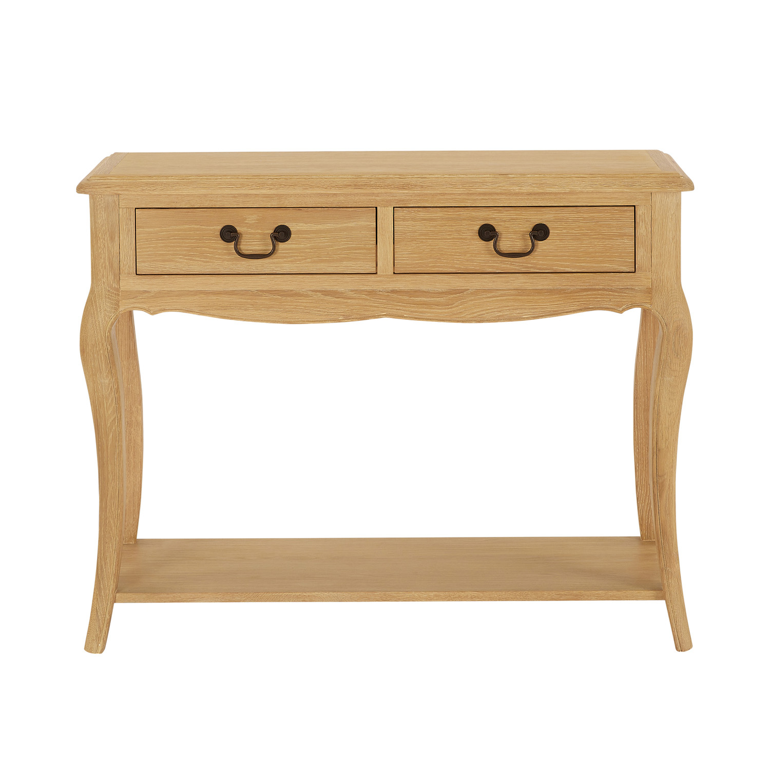 French Chateau Oak Large Console Table - A charming and practical addition to your home, this large console table blends timeless French elegance with everyday functionality. Perfect for a hallway, it provides a convenient spot to set down your keys, while the lower shelf is ideal for a decorative basket or shoes. The two spacious drawers offer practical storage for everyday essentials, and the design is versatile enough to be used as a side table in your living room. The frame is crafted from solid oak with refined detailing, this piece brings warmth, sophistication, and enduring style to any space.