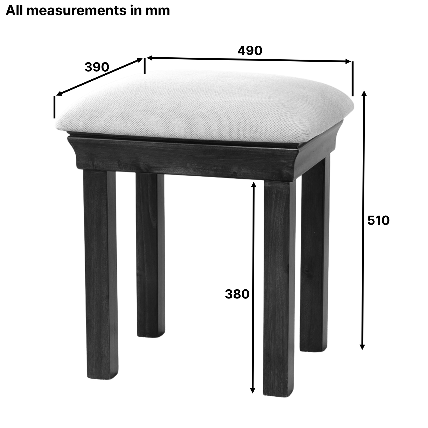 The stool is very comfortable to sit on due to its upholstered cream fabric seat pad.