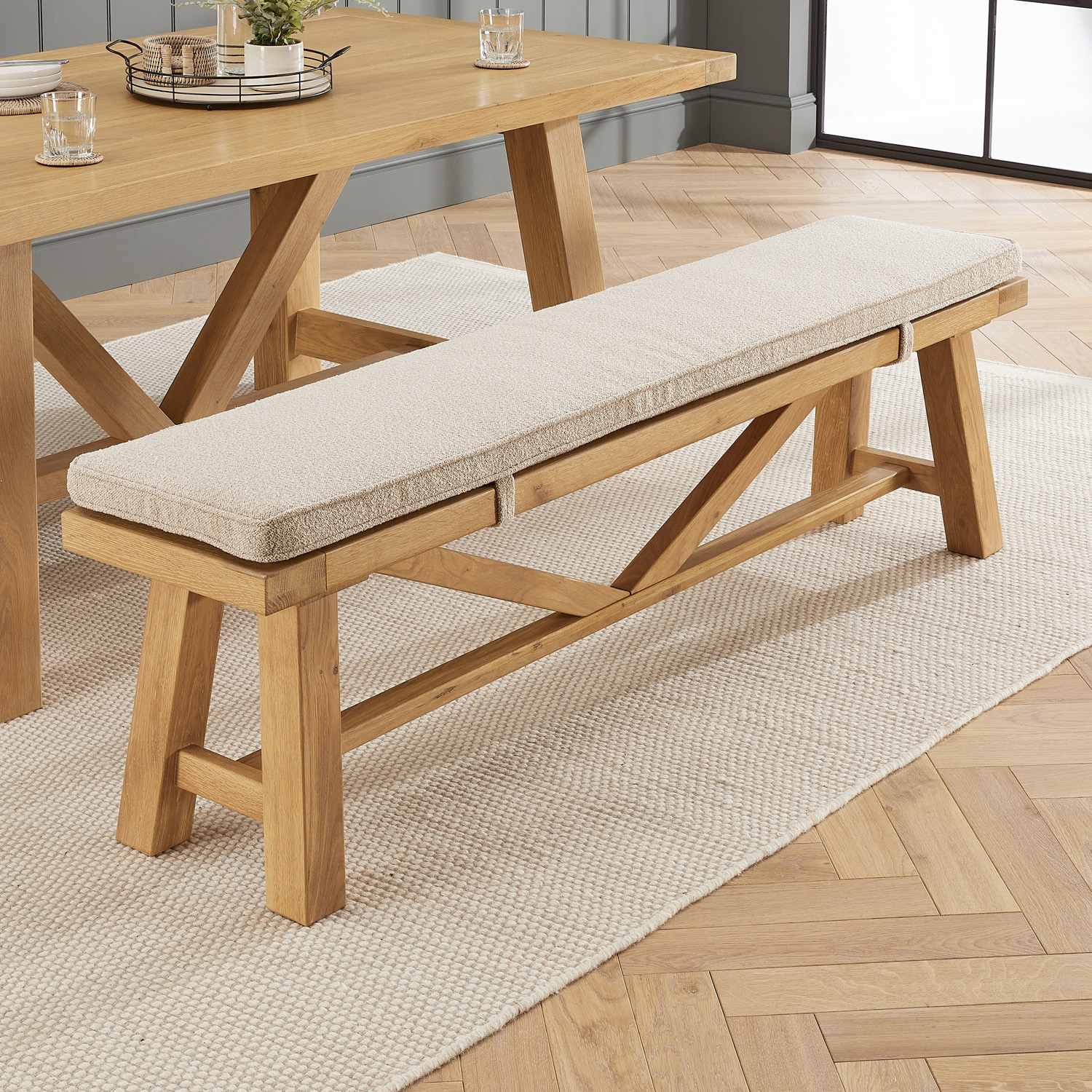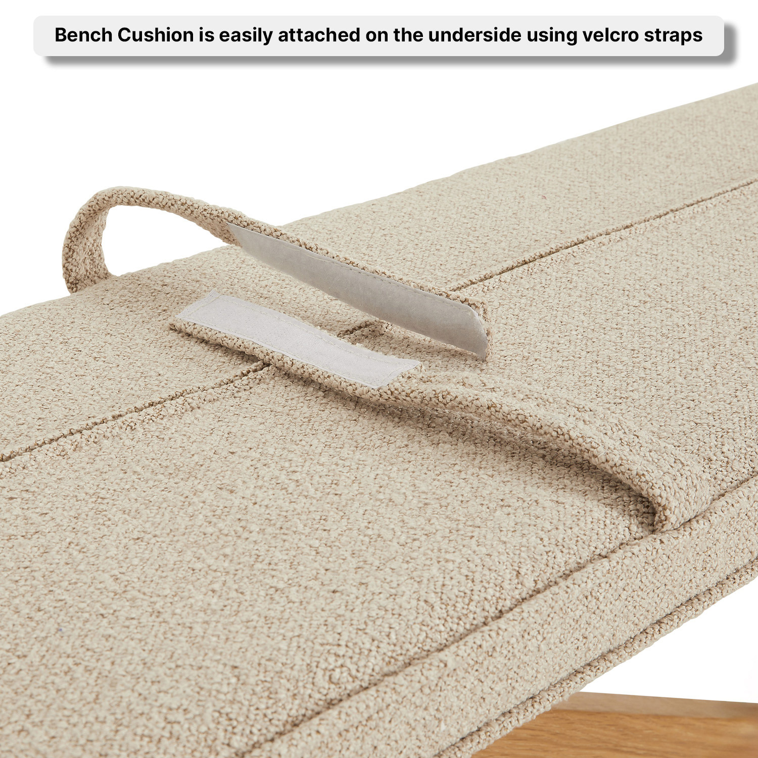 Natural Colour Fabric Cushion - The bench includes a natural colour boucle fabric cushion that is very comfortable and also removable for easy cleaning. The cushion is attached to the bench using two straps with a Velcro fastening for easy use. The boucle fabric is made from 100% polyester so it is very robust for everyday use and is easily cleaned. We also sell matching natural boucle fabric dining chairs allowing you to add dining chairs to this set if preferred.