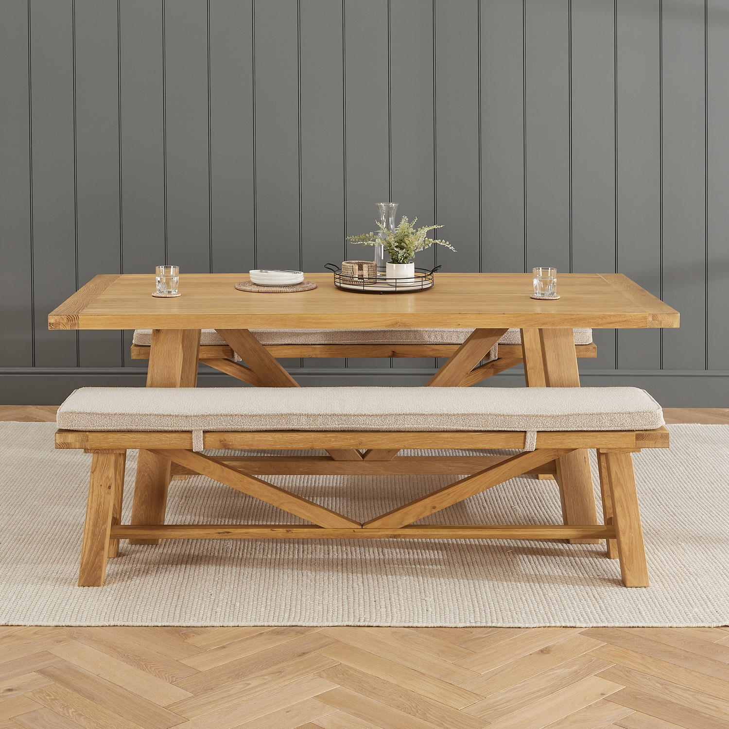 Marbury® Classic Oak Large Trestle Bench – Expertly handcrafted this robust and timeless bench provides generous seating for up to three people. Its sturdy trestle base ensures enduring stability, making it a perfect companion to the Marbury Classic Oak trestle dining table. Designed with versatility in mind, it also serves beautifully in a hallway or boot room, offering stylish and practical additional seating throughout your home.