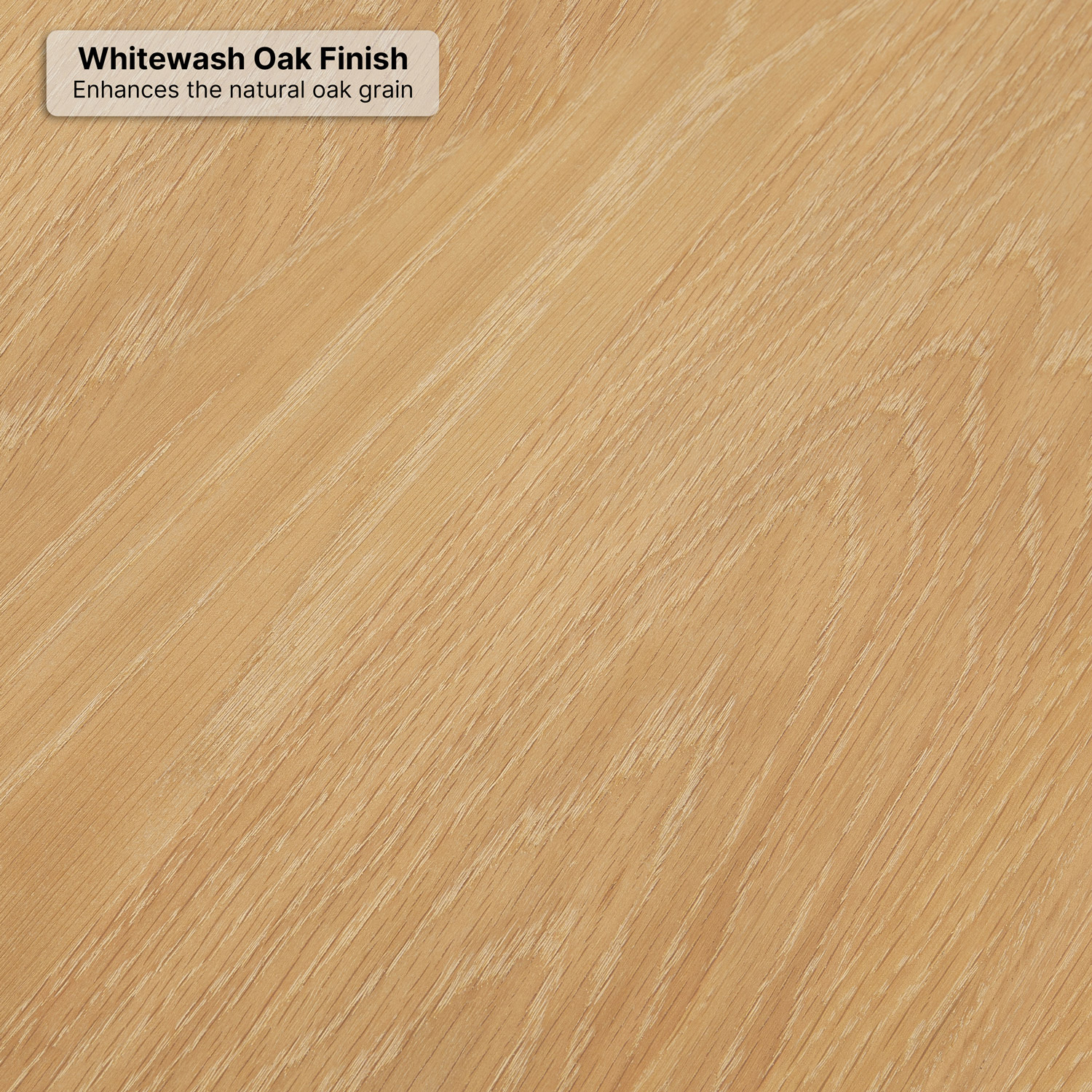 Natural Oak with a light whitewash finish – Crafted from natural oak, with a hand-applied light whitewash finish that subtly softens and accentuates the oak’s natural grain, creating a beautifully refined, airy aesthetic. The finish is complemented by a durable oiled finish, offering exceptional protection while preserving the oak’s natural charm. Designed for effortless upkeep, this furniture is maintenance-free and can be easily cleaned with a damp cloth, ensuring its timeless appeal remains pristine for years to come.