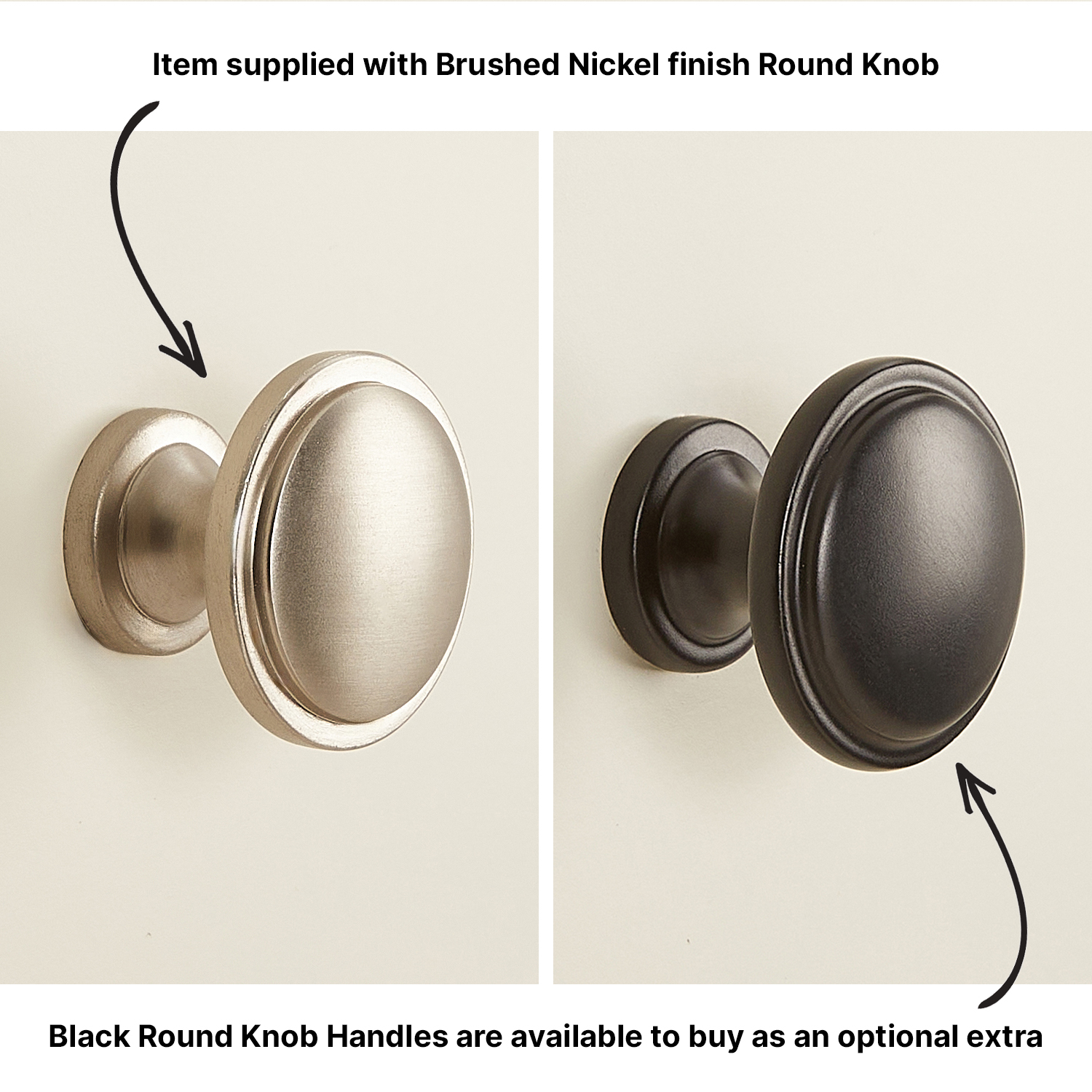 This item is supplied with round brushed nickel handles that perfectly complement the furniture. As an optional extra you can also buy black painted versions of this handle if you would prefer more of a contrasting contemporary look.