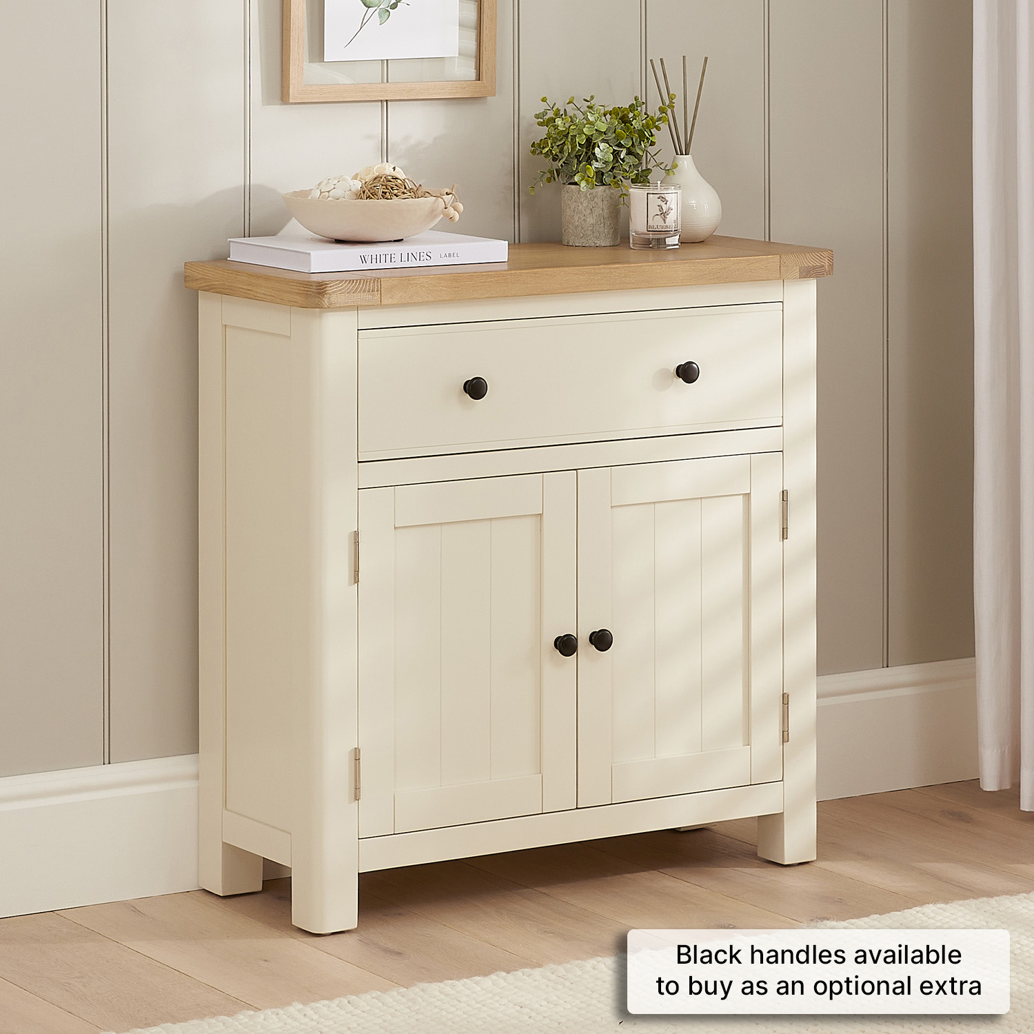 The Marbury® cream painted compact sideboard is a very practical piece of furniture that can be used in many areas of your home. Great to use in a hallway, dining room, kitchen or living room due to its small size and versatility.