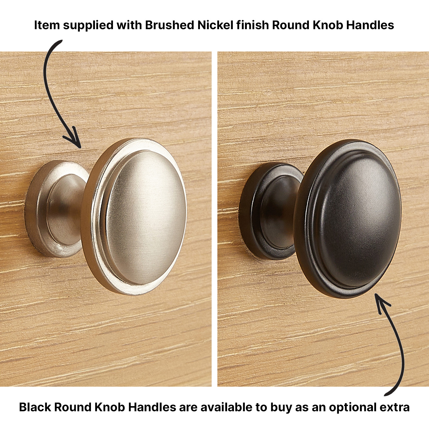 This item is supplied with round brushed nickel handles that perfectly complement the furniture. As an optional extra you can also buy black painted versions of this handle if you would prefer more of a contrasting contemporary look.