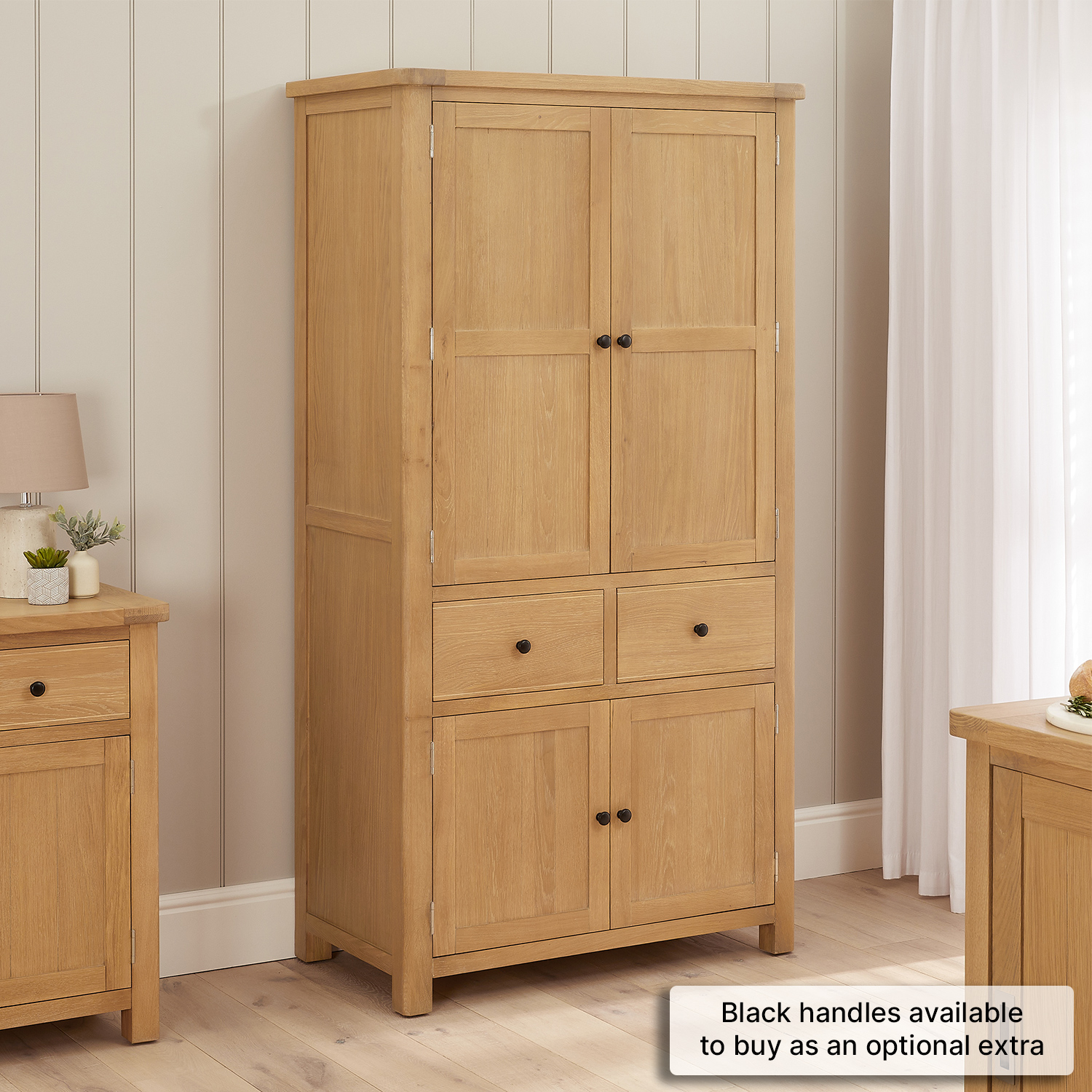 The Marbury® Oak double kitchen larder cupboard is not just any kitchen cupboard. Open it up to find a chef’s idea of storage heaven. It offers you huge amounts of handy storage space for all your food stuffs and looks great in any traditional or modern kitchen setting.
