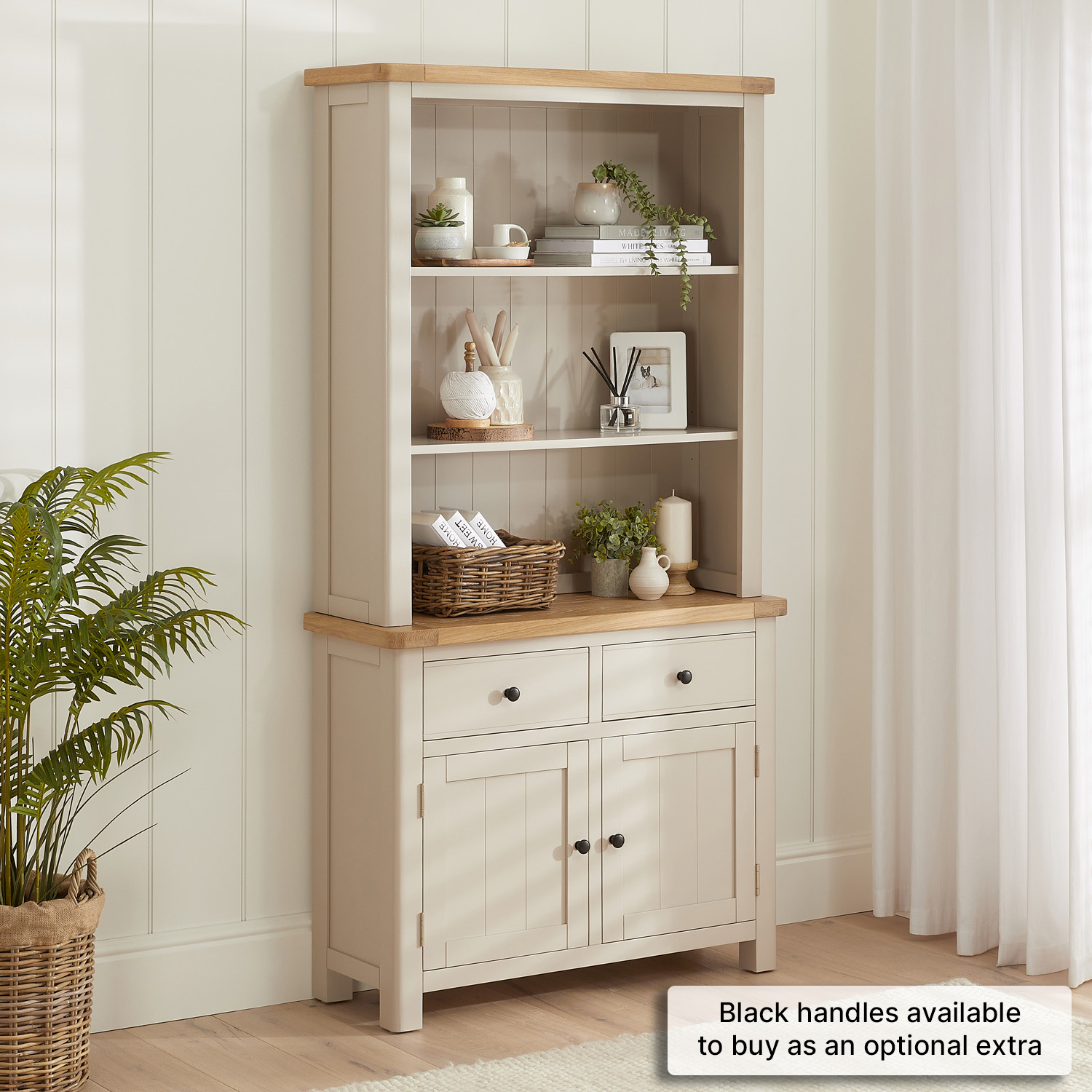 This item is supplied with round brushed nickel handles that perfectly complement the furniture. As an optional extra you can also buy black painted versions of this handle if you would prefer more of a contrasting contemporary look.