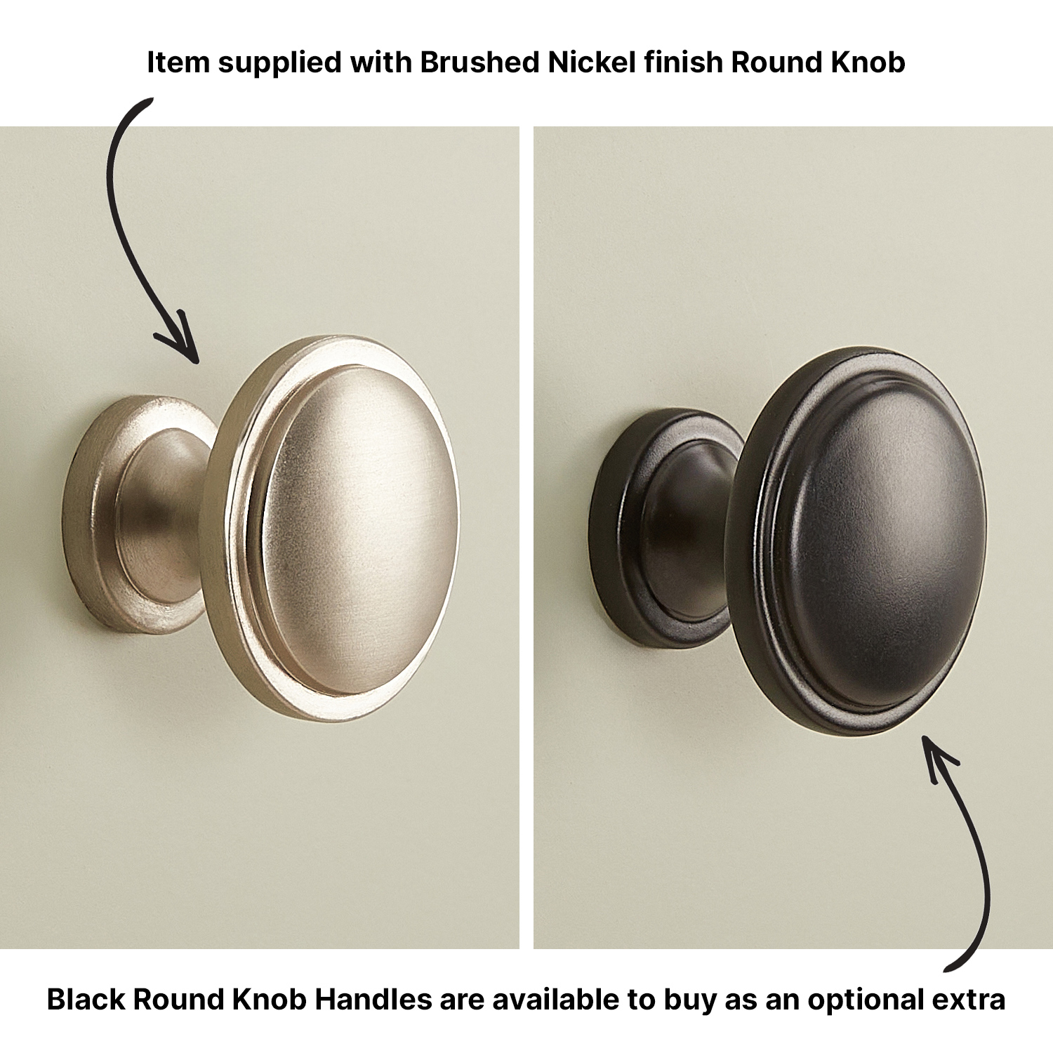 This item is supplied with round brushed nickel handles that perfectly complement the furniture. As an optional extra you can also buy black painted versions of this handle if you would prefer more of a contrasting contemporary look.