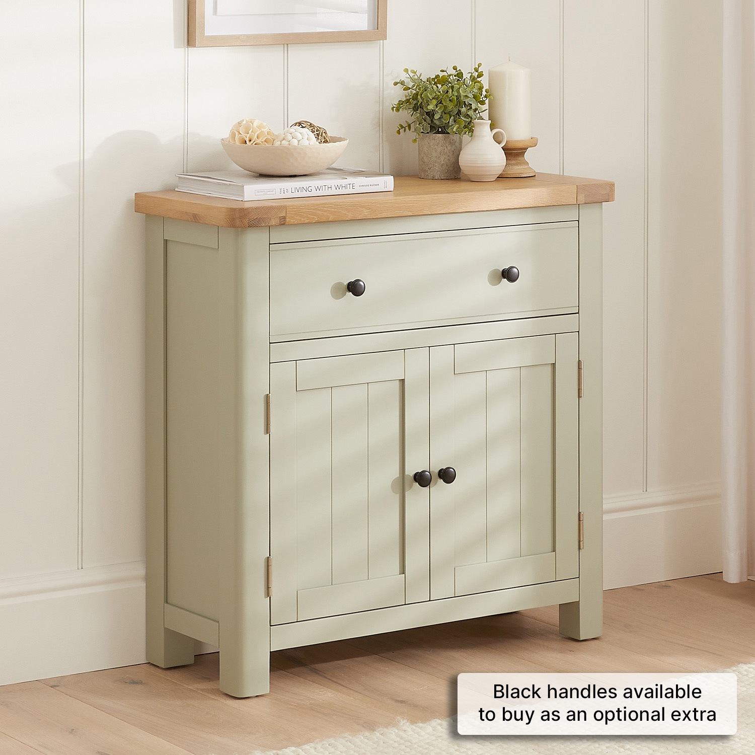 The Marbury® sage green painted compact sideboard is a very practical piece of furniture that can be used in many areas of your home. Great to use in a hallway, dining room, kitchen or living room due to its small size and versatility.