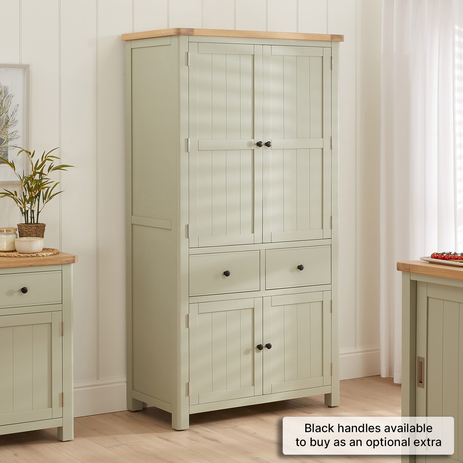 The Marbury® sage green painted double kitchen larder cupboard is not just any kitchen cupboard. Open it up to find a chef’s idea of storage heaven. It offers you huge amounts of handy storage space for all your food stuffs and looks great in any traditional or modern kitchen setting.