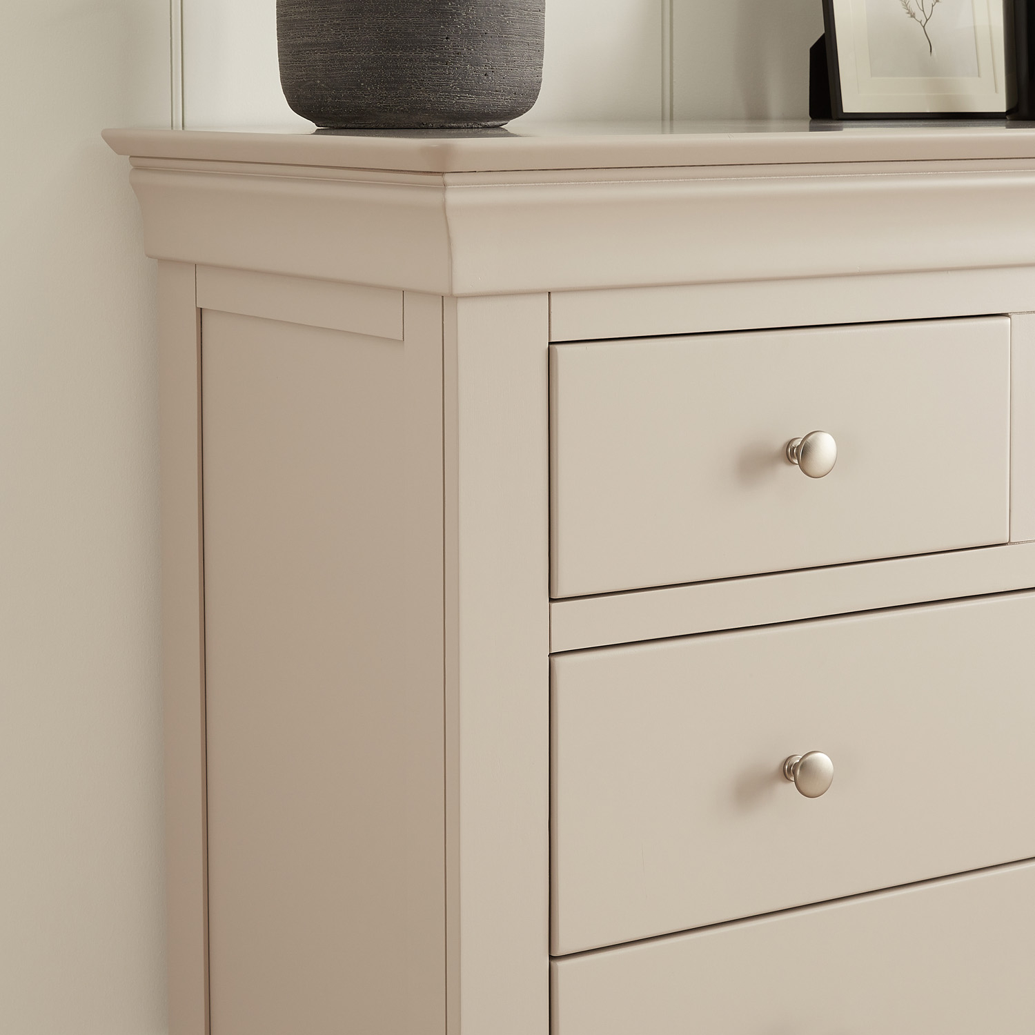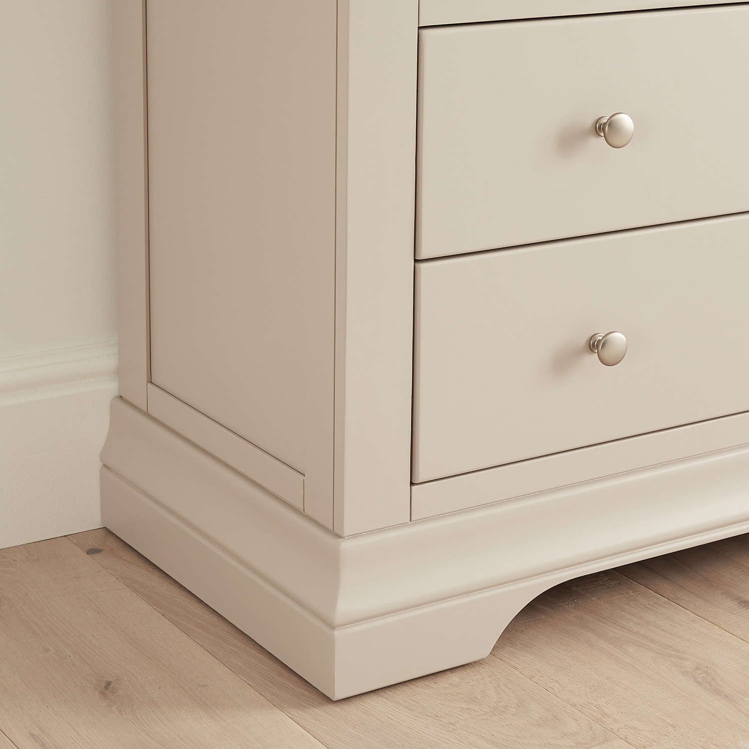 Elegant French Design - The Wilmslow Dove Grey Painted Furniture collection embodies elegant French design, with its graceful lines, intricate detailing, and timeless appeal. The furniture is distinguished by the tapered top cornices and plinth base design, adding an extra layer of sophistication and enhancing the overall aesthetic. This design element reflects the impeccable craftsmanship and attention to detail that define the Wilmslow range.