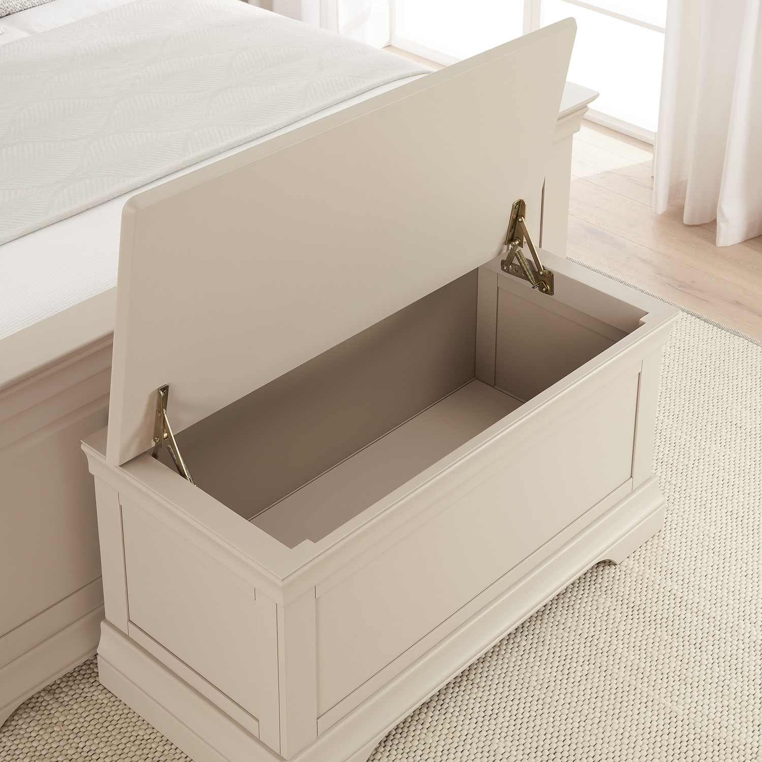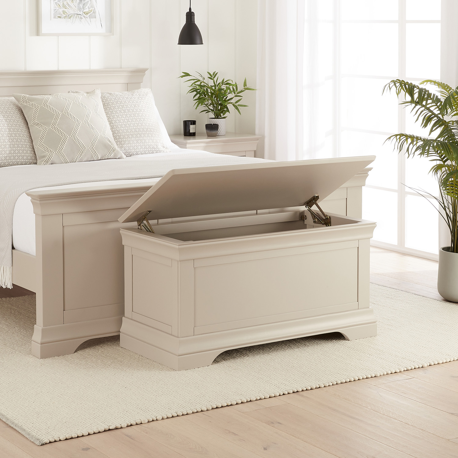 Wilmslow Dove Grey Painted Bedding Box – This bedding box has a large internal storage area. It has a top lid that easily lifts up and can hold open due to its sprung safety hinges. It provides you with plenty of storage space for all your blankets and bedding. It can also be used for other storage solutions such as shoe or toy storage.