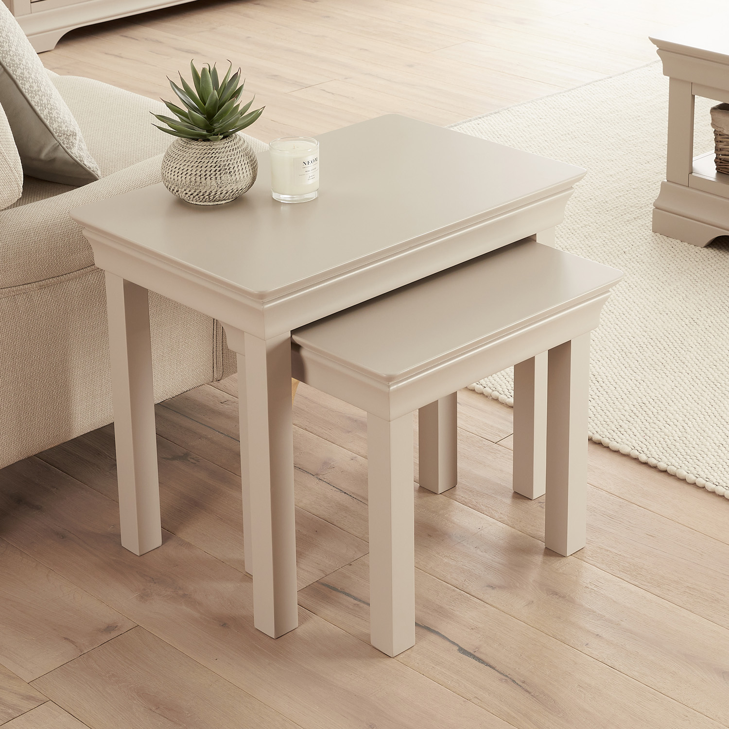 Wilmslow Dove Grey Painted Nest of 2 Tables – Add a touch of luxury to your living space with this nest of two tables. These space saving side tables provide you with plenty of table top space for when guests pop round or to pop down your cup of tea.