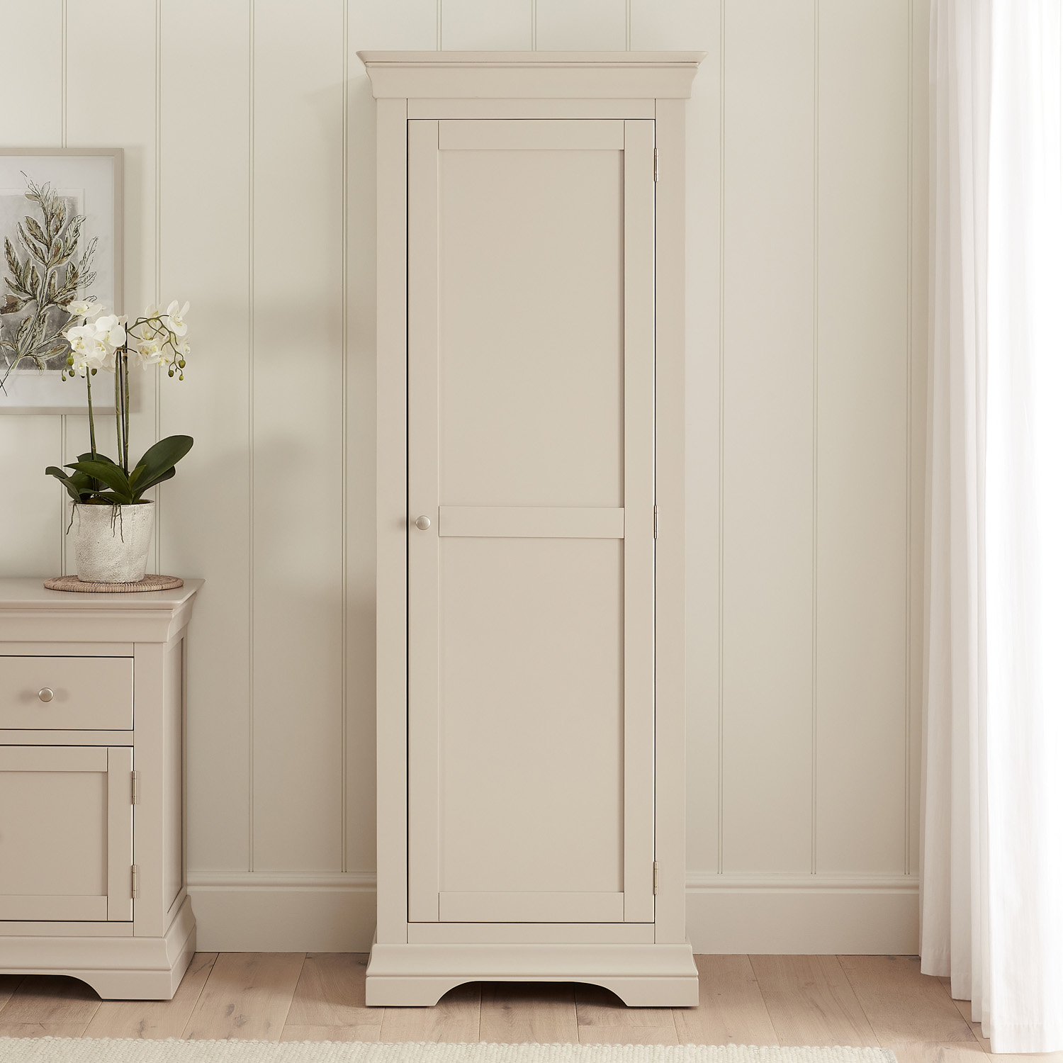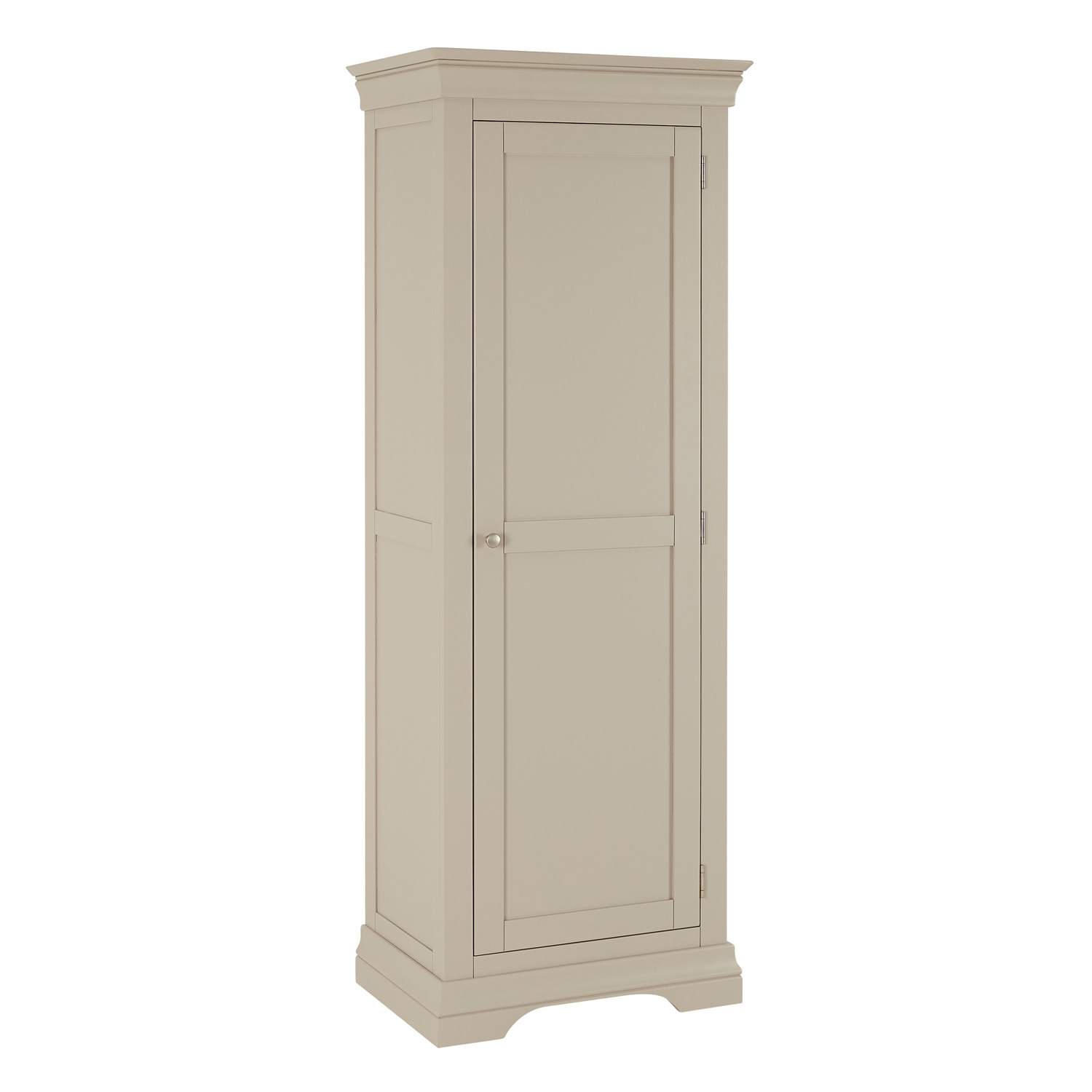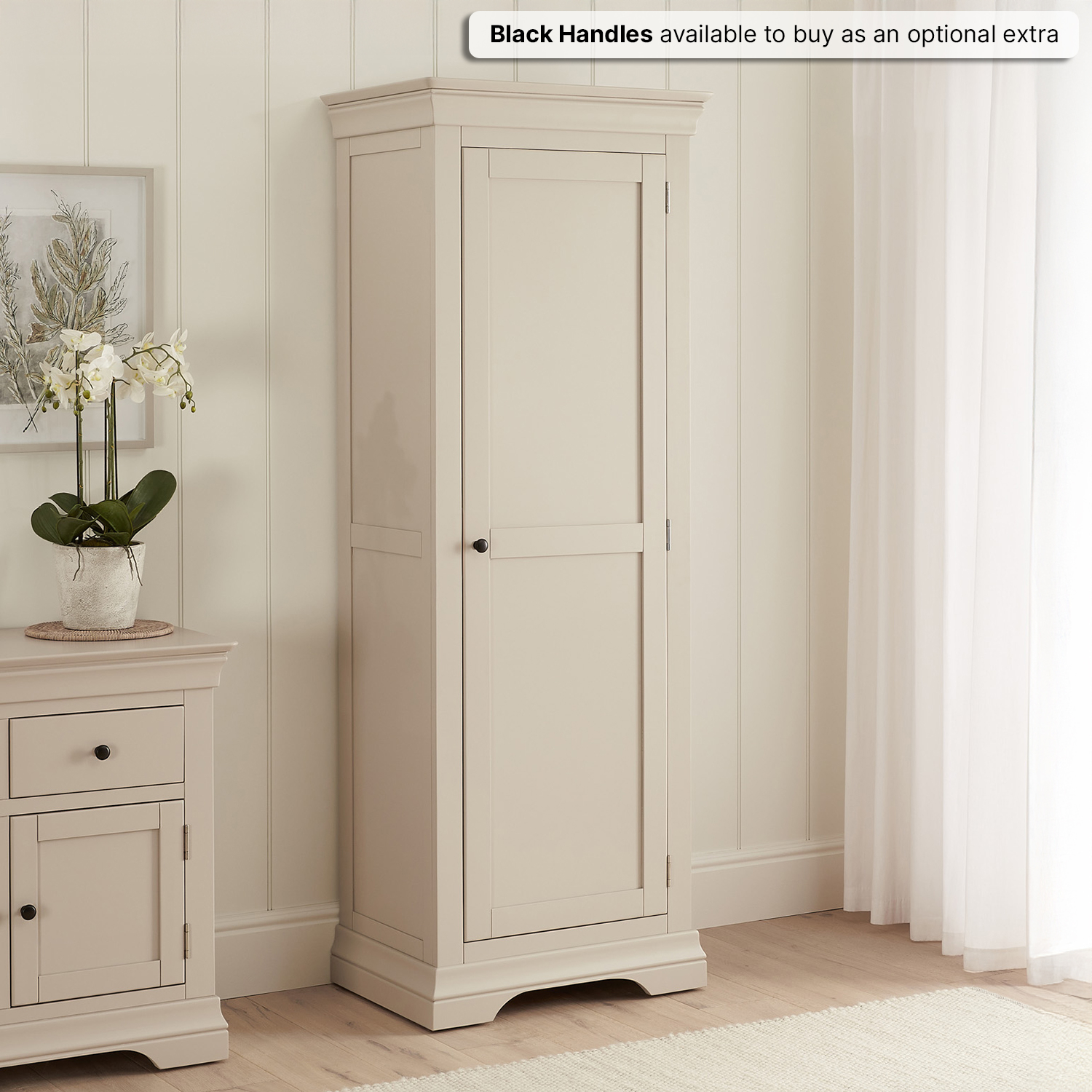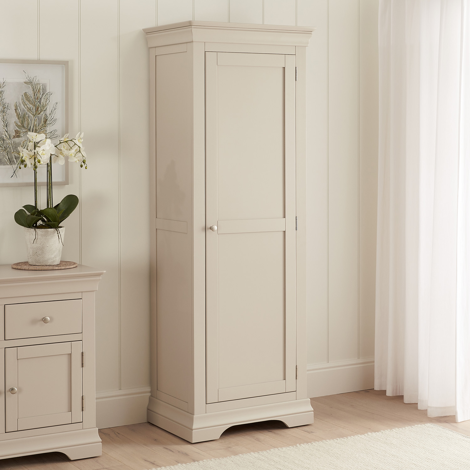 Wilmslow Dove Grey Painted Single Hallway Cupboard – Add a touch of luxury to your hallway with this large single door coat and shoe cupboard. It is a beautifully crafted for practical hallway storage. Inside, you'll find four double coat hooks and five height-adjustable and removable shelves, allowing you to tailor the storage space to your needs. Whether you're looking to neatly hang coats while storing shoes below or prefer to utilise all shelves for dedicated shoe storage, this cupboard adapts effortlessly. Beyond hallway organisation, its multi-purpose design makes it ideal for various spaces in your home. Use it in the kitchen as a larder cupboard, in a utility room for general household storage, or upstairs as a linen cupboard. With endless possibilities, this timeless piece blends practicality with refined craftsmanship.