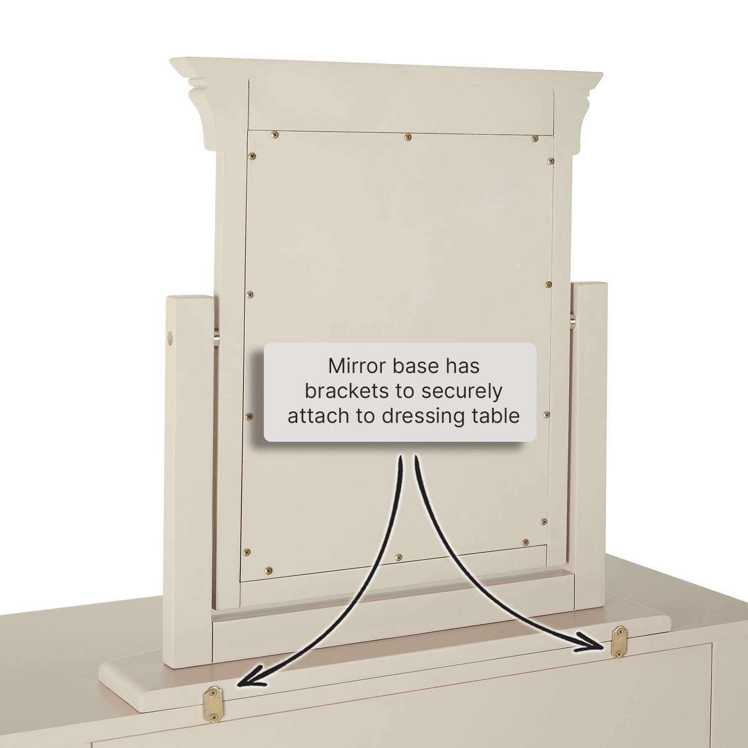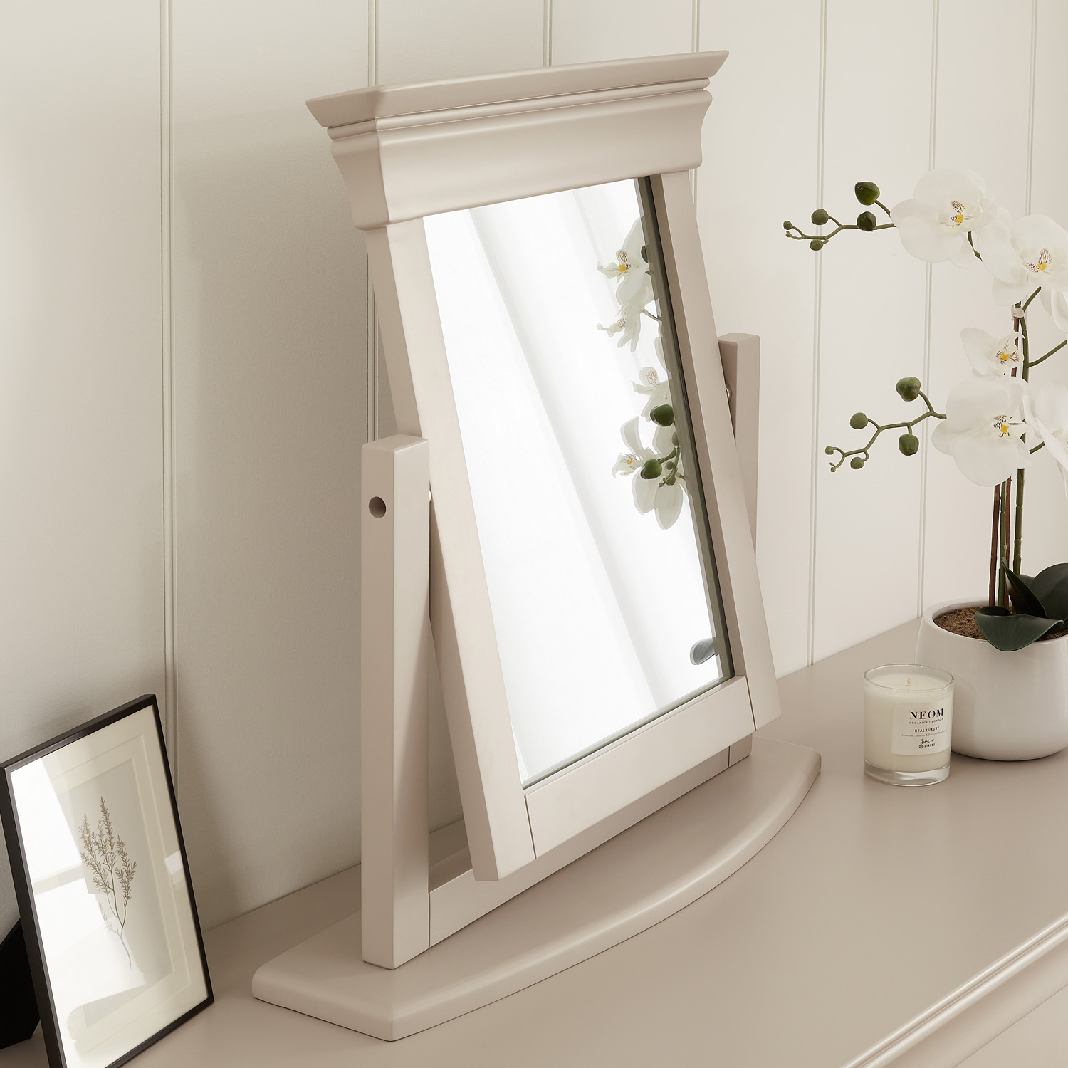Wilmslow Dove Grey Painted Vanity Mirror – Add a touch of elegance to your bedroom or dressing room with this stylish and practical dressing table mirror. It’s elegant and practical design has a hinged mirror that allows for you to tilt the mirror to your preferred angle and the base can be secured to your dressing table if preferred using joining brackets on the back.
