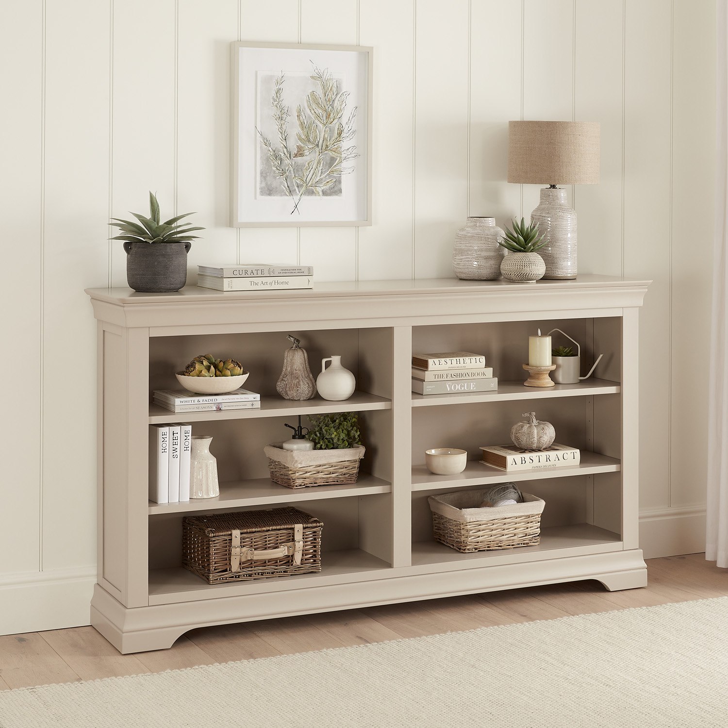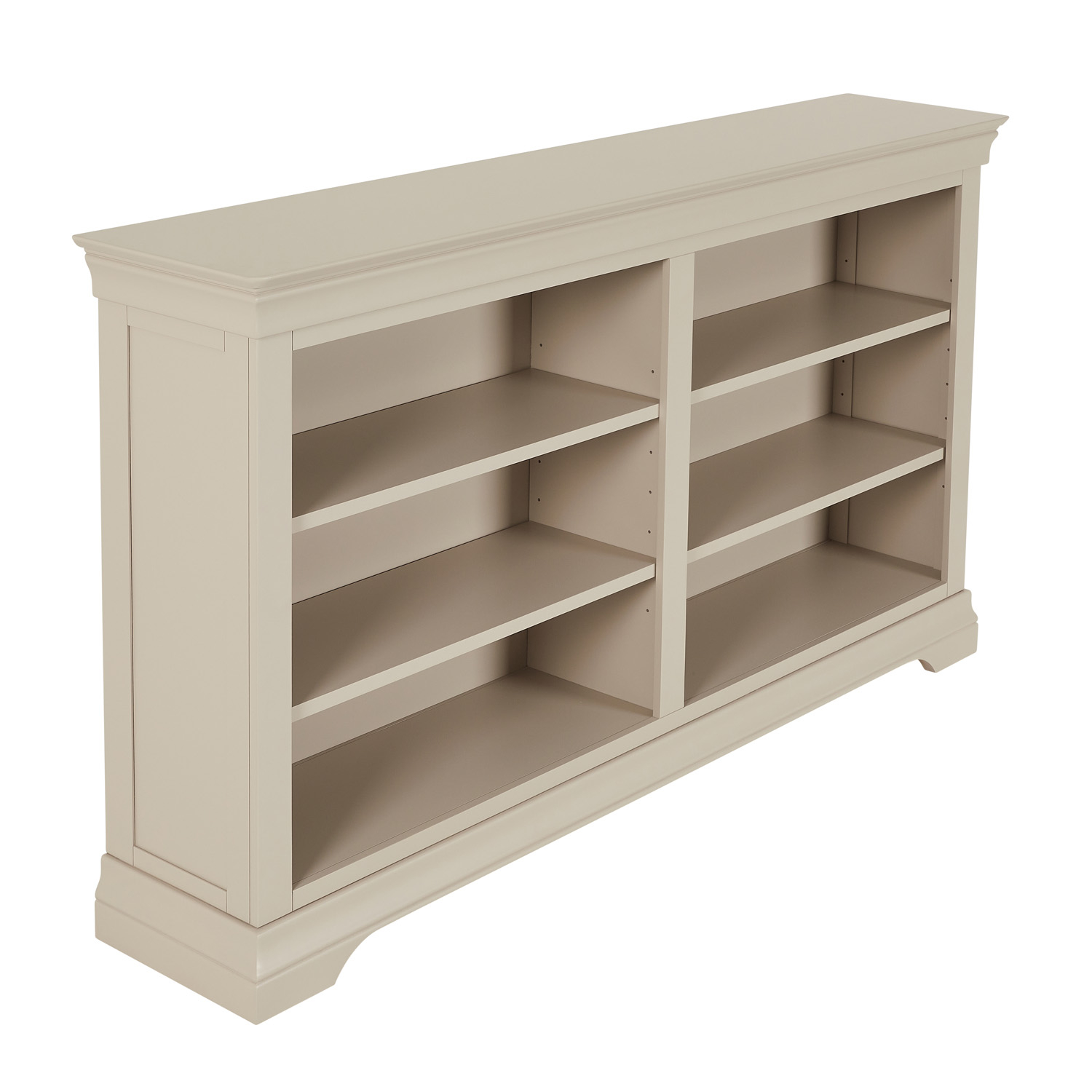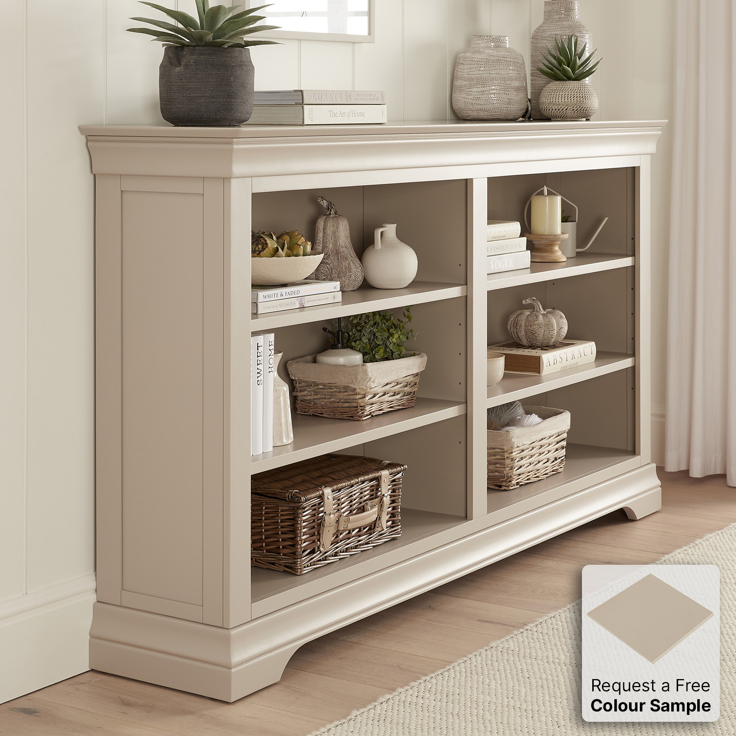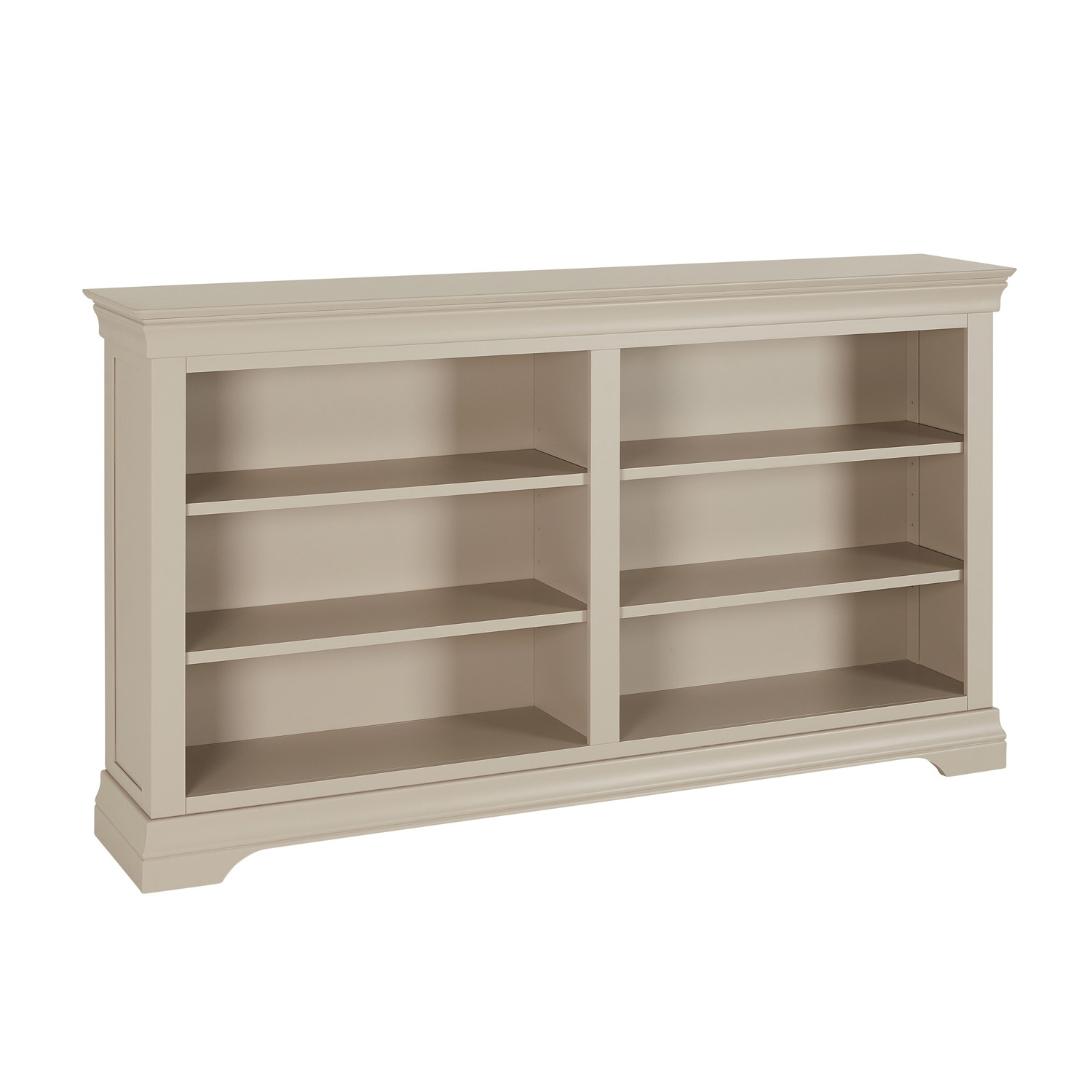 Wilmslow Dove Grey Painted Wide Low Double Bookcase – Elevate your living space with the timeless elegance of the Wilmslow wide low double bookcase. This generously proportioned bookcase offers ample room for books, décor, and treasured keepsakes. Four fully height-adjustable shelves allow you to tailor the layout to suit your display preferences, combining practicality with refined style.