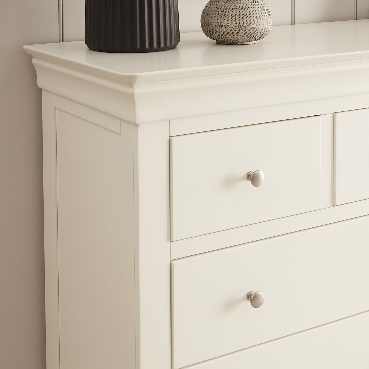 Traditional Construction Methods - Crafted using traditional construction methods, this Wilmslow White chest boasts dovetail joints on drawer fronts and mortise and tenon joints on the frames. It is made using a combination of solid pine and man-made board for increased strength and durability over time. These time-honoured techniques enhance the strength and beauty of each piece, making it a true investment in quality that is designed to last a lifetime. This chest is delivered fully assembled and ready to use. Handles simply require screwing on.
